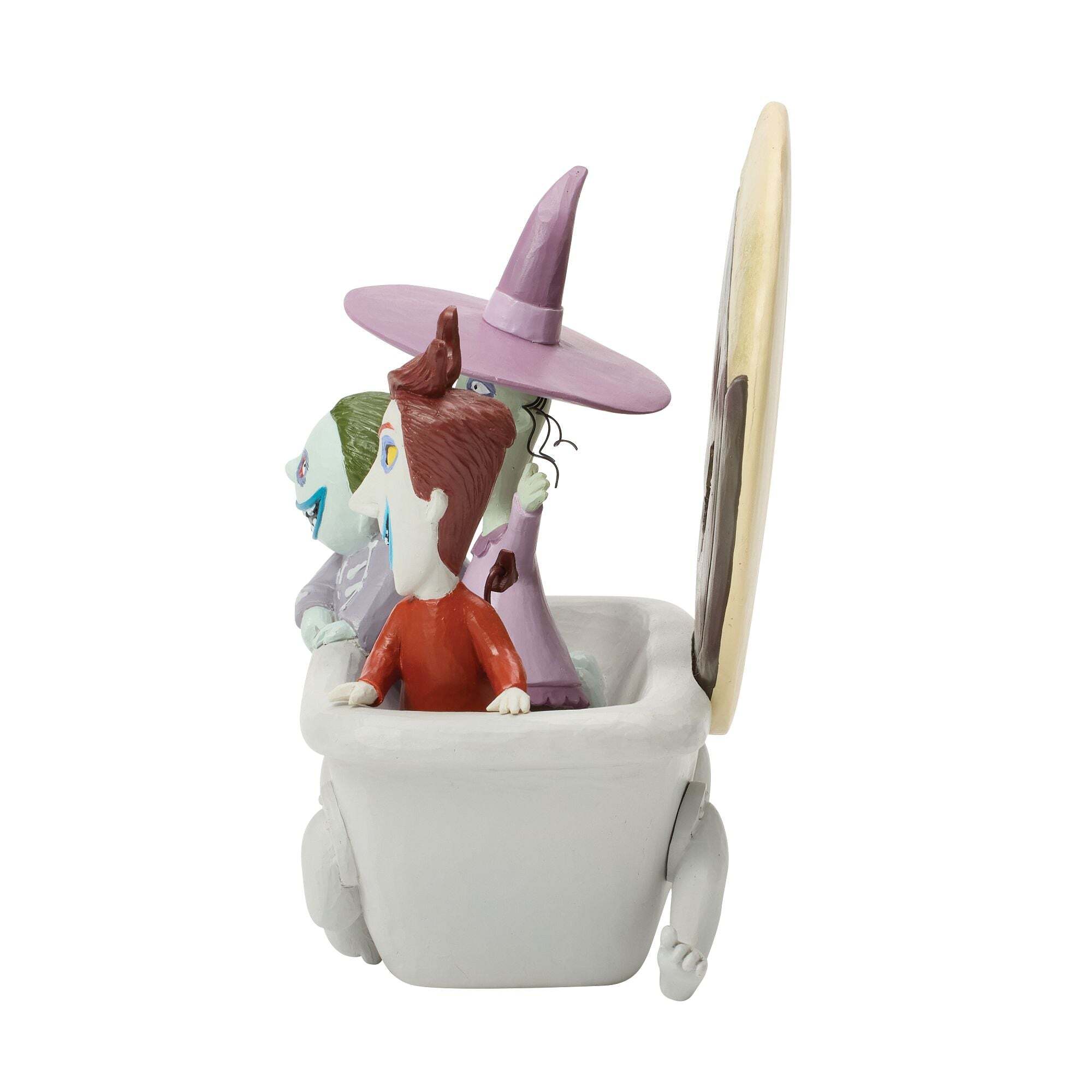 Traviesos y macabros, Lock, Shock y Barrel se unen en esta divertida escultura de Disney Traditions inspirada en Nightmare Before Christmas. Reunidos en una bañera bajo una luna brillante, las expresiones exageradas y poses peculiares del trío capturan a la perfección su encanto caótico. Una pieza decorativa divertida y espeluznante que añade un toque de la magia de Halloween Town a cualquier colección. Altura: 15 cm. Pintada a mano con maestría y elaborada con resina de piedra de alta calidad. Diseño: Jim Shore, reconocido artista. Producto con licencia oficial de The Walt Disney Company.