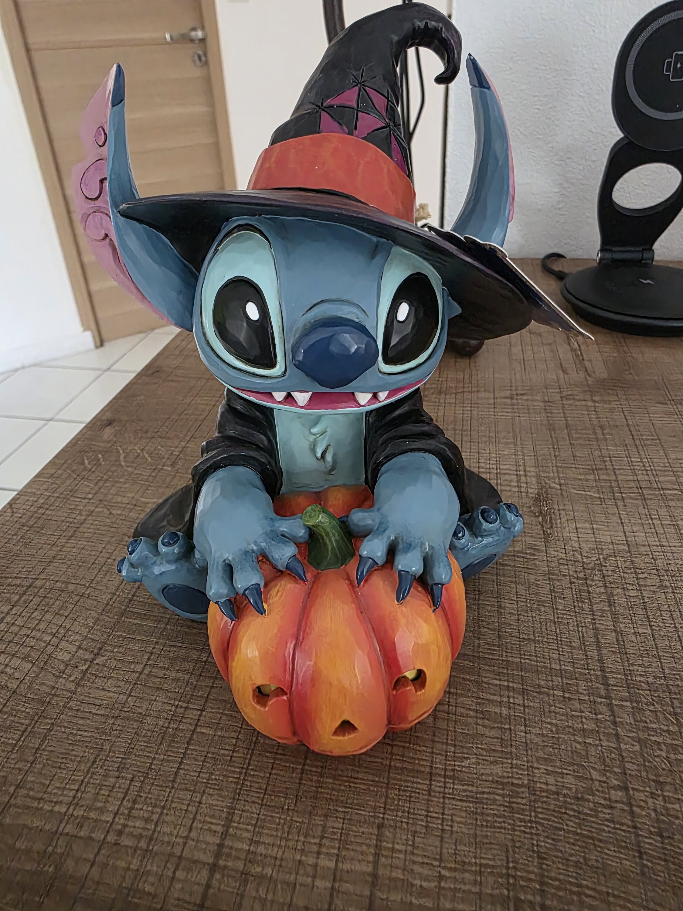Juguetón y travieso, Stitch se entrega al espíritu espeluznante de Halloween en esta encantadora escultura de Disney Traditions . Vestido de la bruja, se sienta junto a una calabaza luminosa, aportando un toque de magia y diversión a la escena. Con su luz LED integrada, esta encantadora pieza crea un cálido ambiente de Halloween , capturando a la perfección la irresistible personalidad de Stitch.
