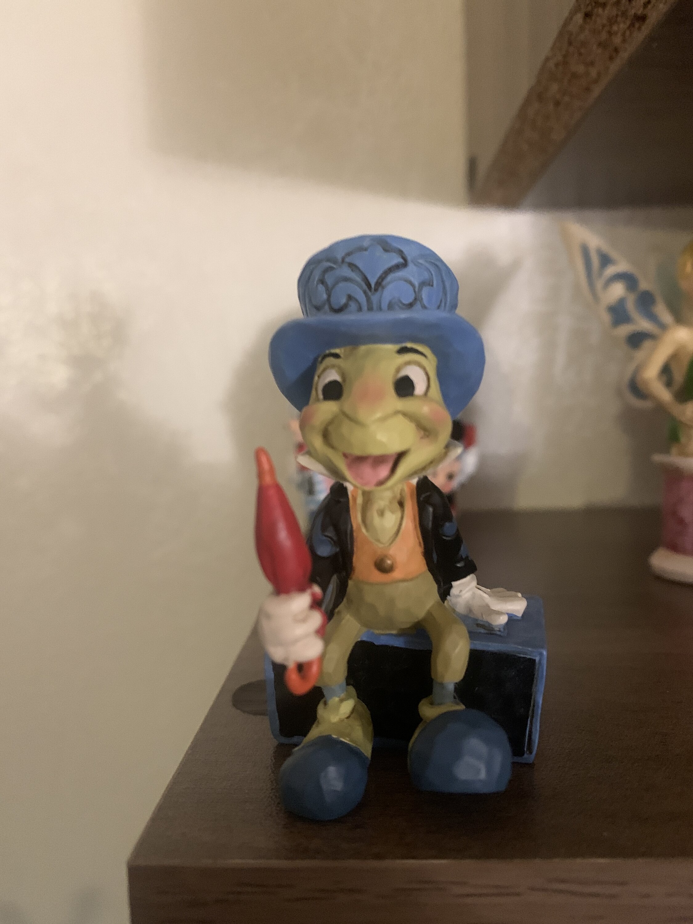J'ai toujours aimé ce petit personnage de Pinocchio, le brave Jiminy Cricket. Cette figurine est super bien faite car il est tout mimi, tout joyeux assis sur sa boîte d'allumette et il rend super bien sur une étagère ou au pied d'une lampe.