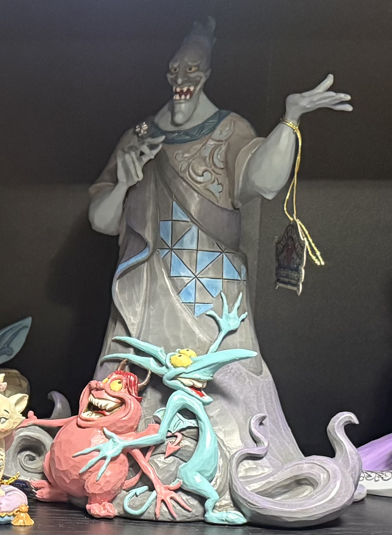 Il cattivo per eccellenza, da sempre il mio personaggio preferito della Disney. La figura è di dimensioni notevoli ma allo stesso tempo molto leggera. A parer mio è la statuetta in cui Ade è meglio rappresentato e l' aggiunta dei suoi due tirapiedi, Pena e Panico, rende il tutto ancora più bello.