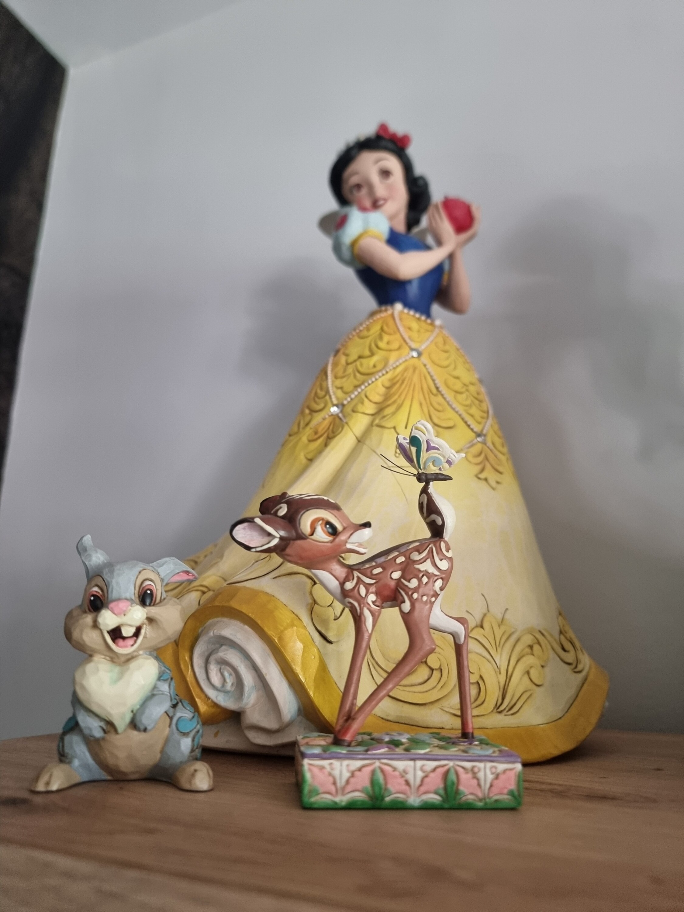 Mini figurine avec des couleurs très belles, de la finesse, des détails (du papillon, du Bambi, jusqu'au socle). Tout ce que l'on aime chez Jim Shore. Une seule figurine de Bambi à avoir, c'est celle-là !