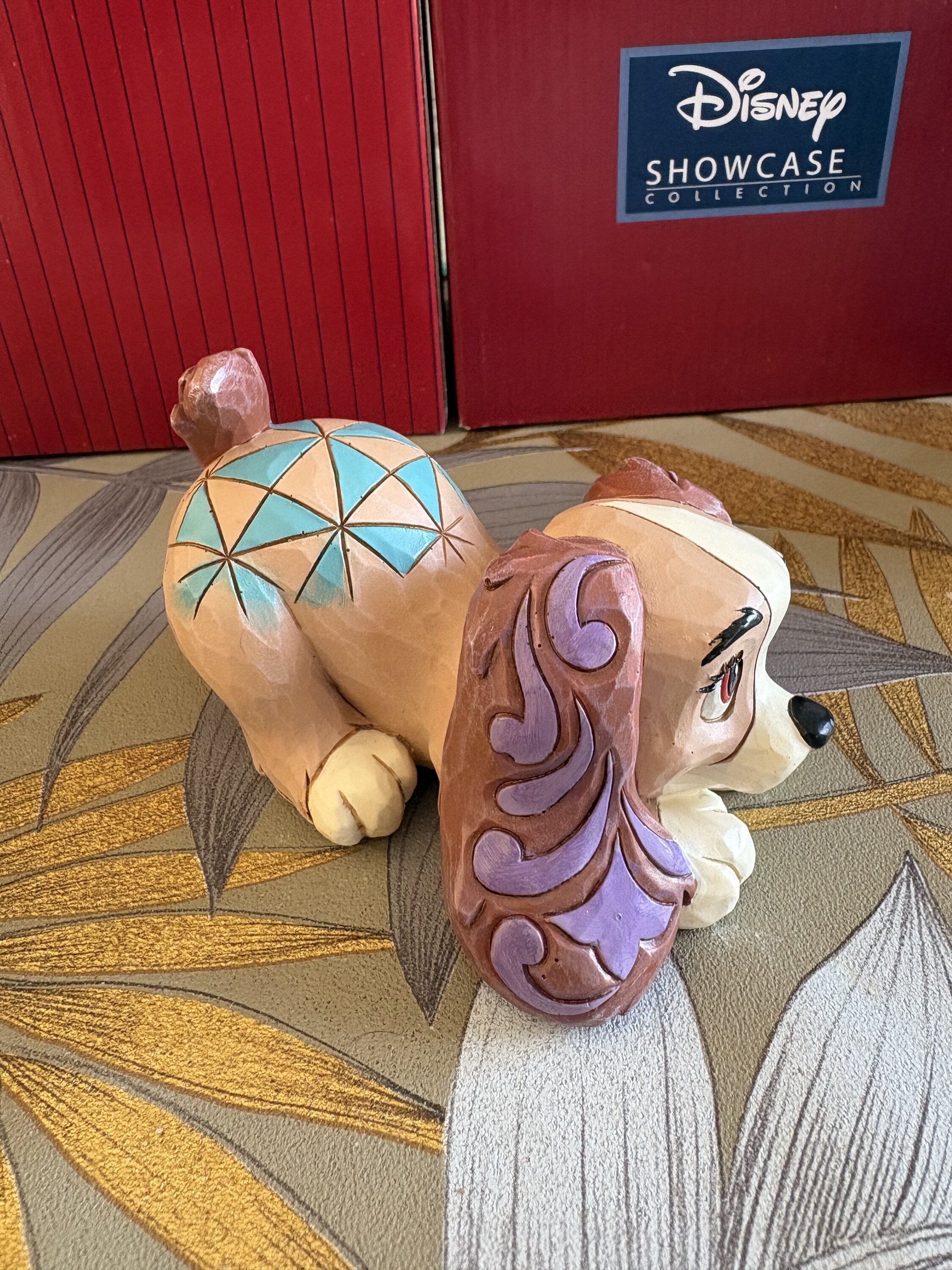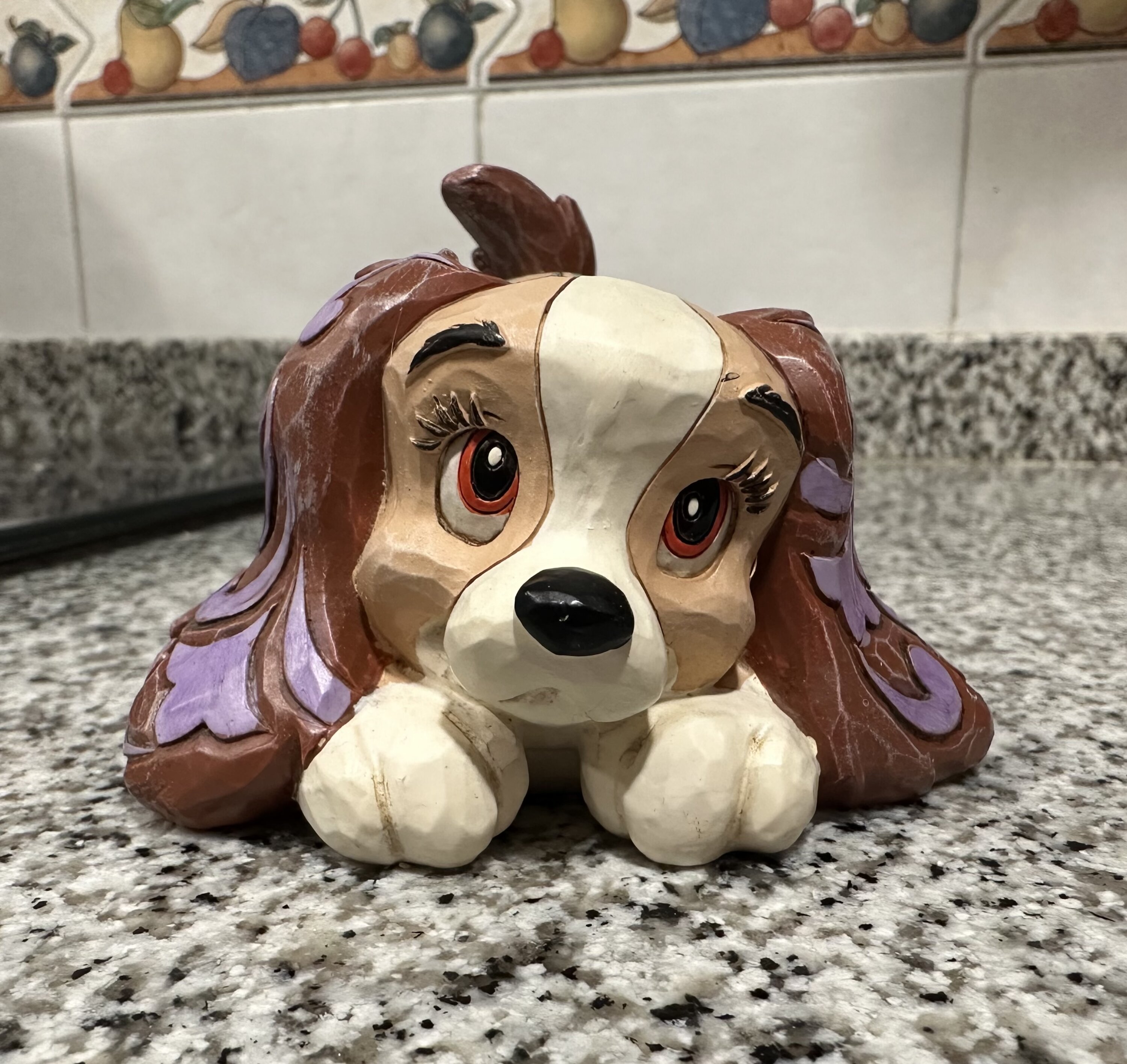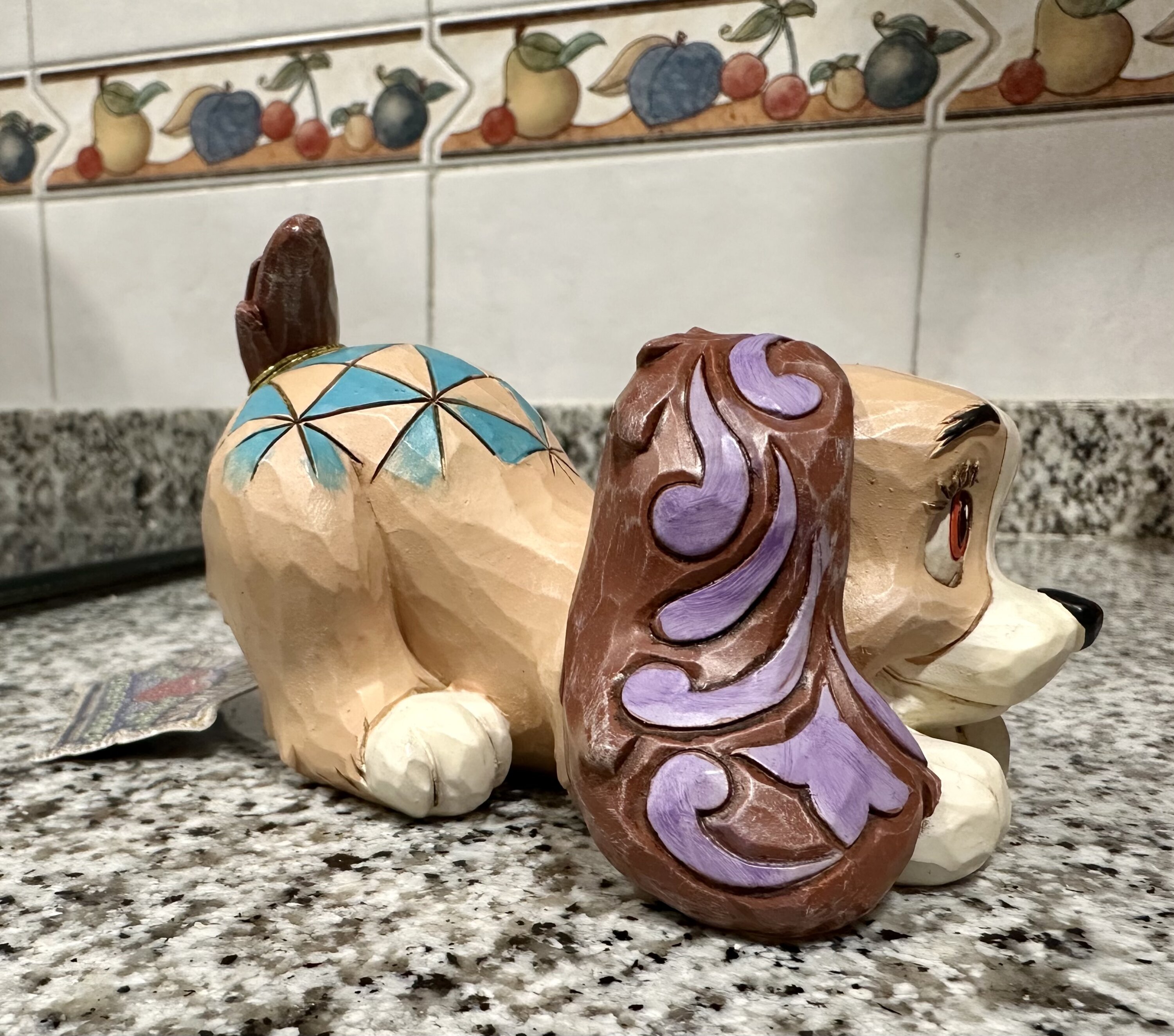 Inspirada en La Reina y el vagabundo, esta creación en miniatura de Jim Shore presenta a la querida perra, Reina, con el diseño de mosaico y rosemale característico del artista. La colorida réplica es una encantadora adición a la decoración del hogar de cualquier amante de Disney.