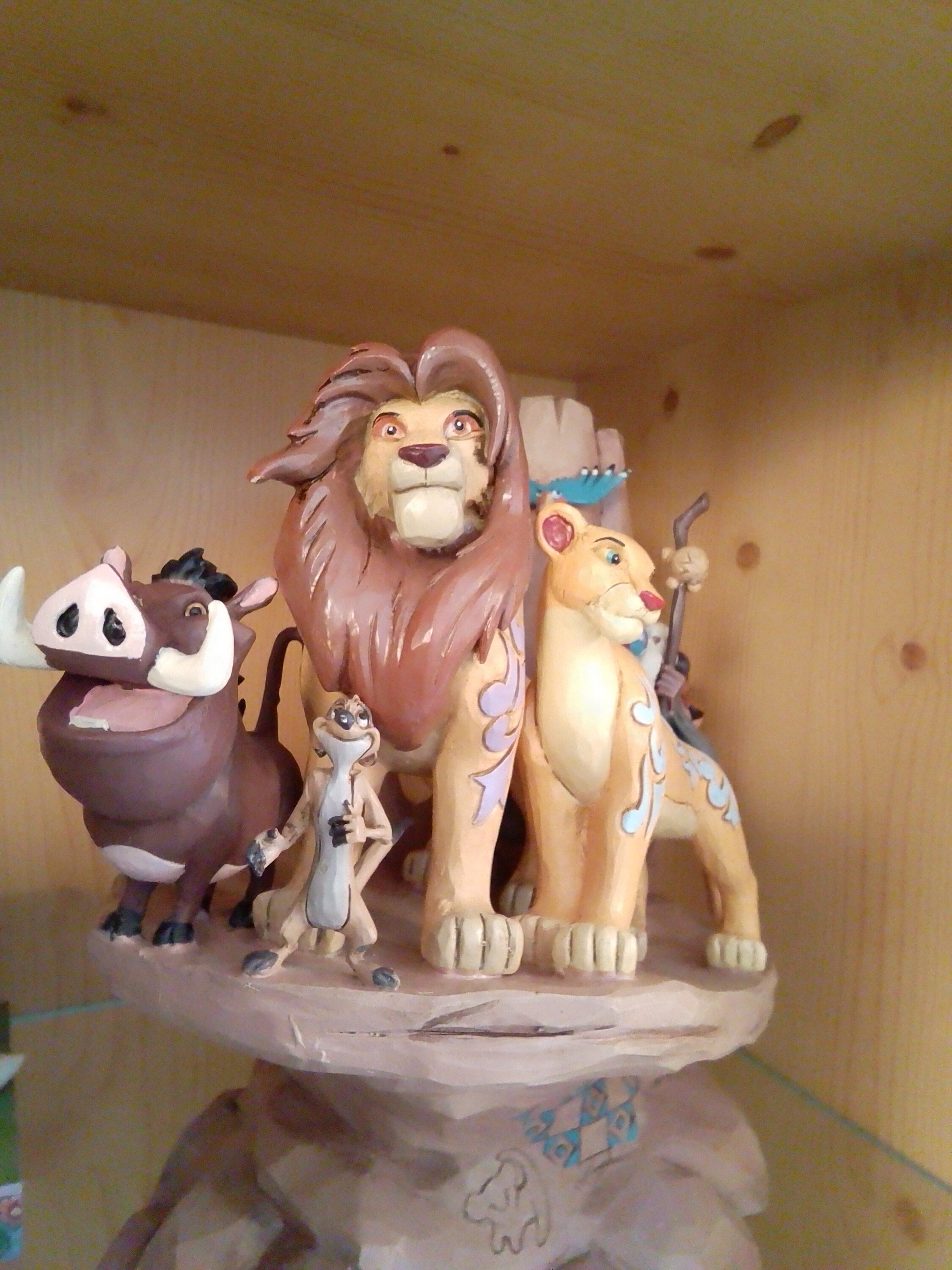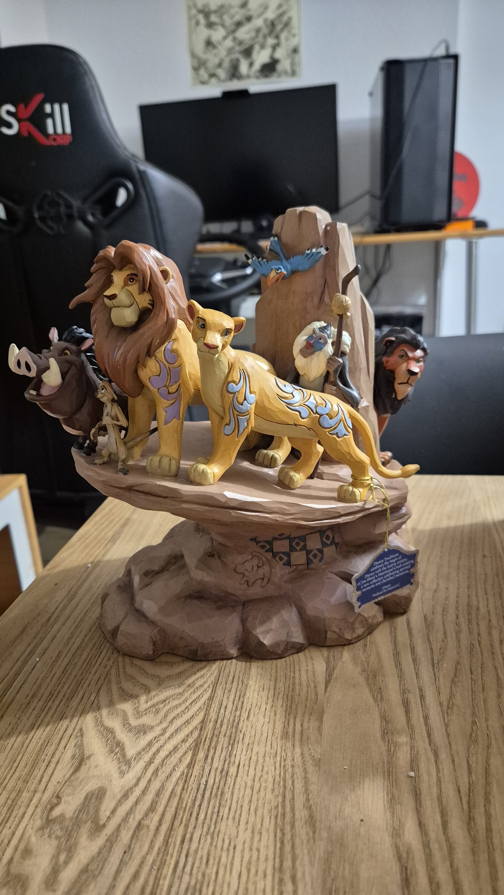 Figura impresionante y bellísima de los personajes del rey león en la mítica roca.Por ponerle una pequeña pega el efecto tallado madera en la cara de Simba podía haber sido algo más suave.Figura que no puede faltar a los coleccionistas amantes de las figuras creadas por JIM SHORE para Disney
