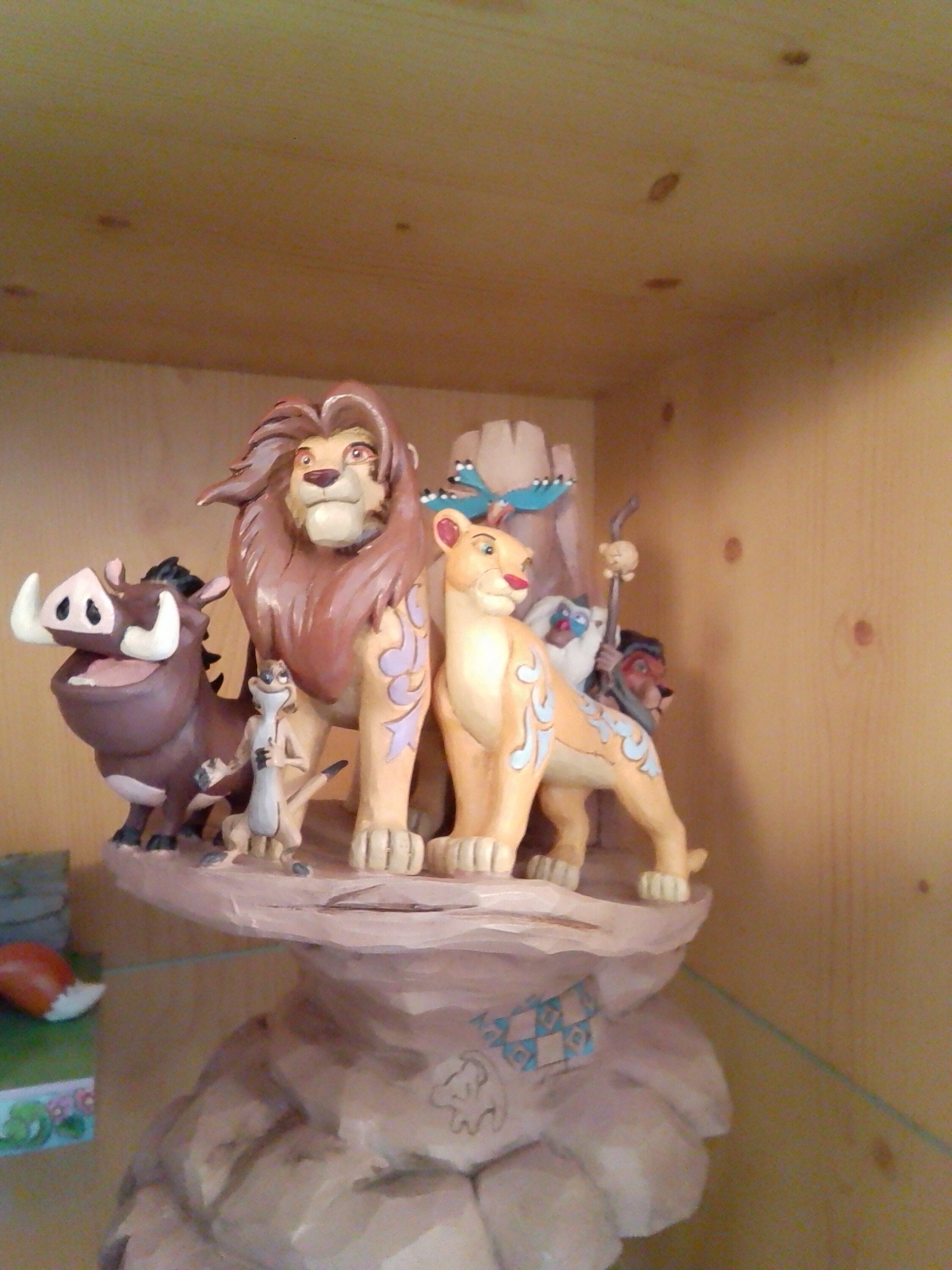 ¡La figura tan esperada ya está aquí y es magnífica! Lástima que Jim Shore cortó el espacio en la roca porque Rafiki se encuentra incrustado en la roca y en el trasero de Simba. Pequeñas imperfecciones en el acabado, como siempre en estas figuras, pero realmente sigue siendo una hermosa pieza para coleccionistas.