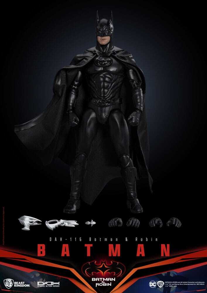 Batman, el icónico Caballero Oscuro de Batman & Robin (1997), cobra vida en esta figura a escala 1 de Dynamic Action Heroes, de 21 cm de altura. Capturando la presencia heroica, la fuerza y el elegante diseño de este legendario personaje, esta figura trae la versión cinematográfica de Batman directamente a tu colección. Esculpido con meticulosa atención al detalle, Batman luce su traje característico de Batman & Robin, incluyendo la detallada armadura, la capa ondulante y la icónica capucha. La pintura de alta calidad realza cada textura, desde la musculatura esculpida hasta las líneas definidas del traje, reflejando a la perfección su apariencia en pantalla y su imponente aura. Con múltiples puntos de articulación, esta figura permite poses dinámicas y llenas de acción, ideal para coleccionistas que quieran recrear escenas memorables de la película de 1997 o escenificar sus propias hazañas heroicas. Imprescindible para los fans y coleccionistas de DC Comics, esta figura de Batman (Batman y Robin) encarna el coraje, la determinación y el espíritu atemporal del Caballero Oscuro de Gotham. ¡Añádela a tu colección y da vida a este héroe cinematográfico!