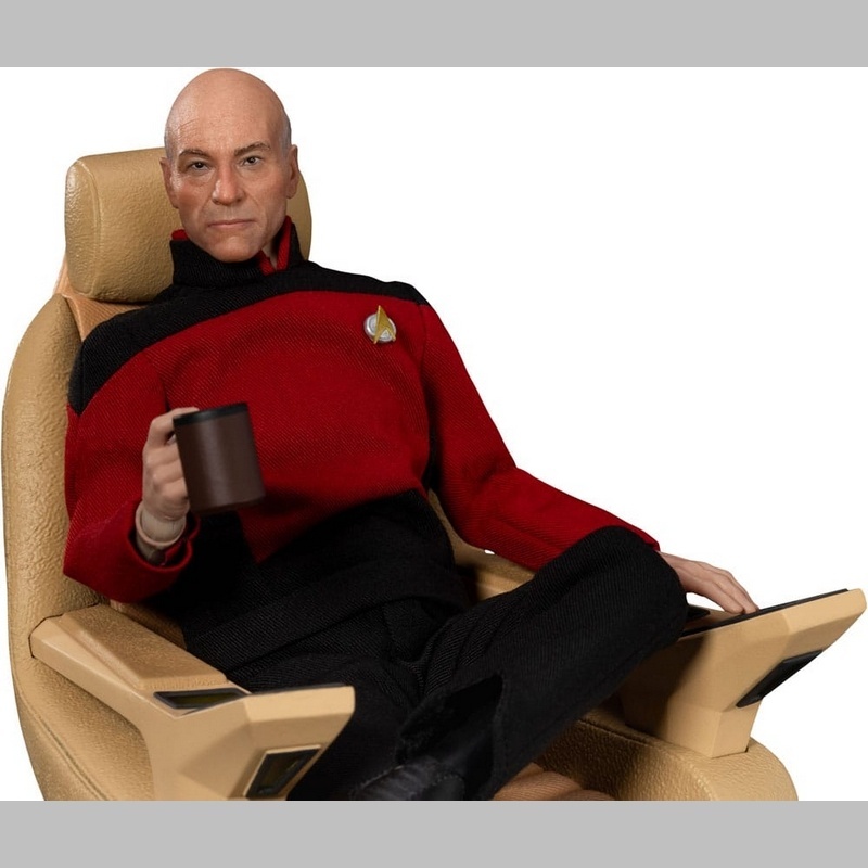 Esculpido con meticulosa atención al detalle, Picard luce su uniforme característico de la Flota Estelar, su insignia de mando y su distinguida postura. La pintura de alta calidad realza cada textura, desde los pliegues de su uniforme hasta los sutiles detalles de su expresión facial, reflejando a la perfección su apariencia en pantalla.
