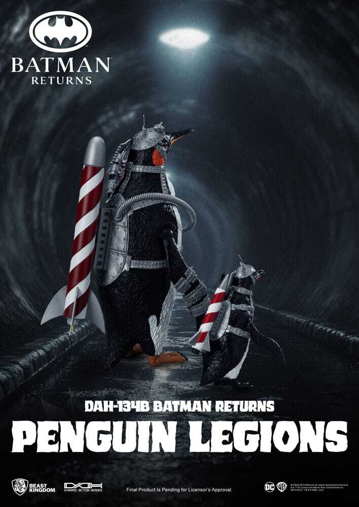 Las Legiones del Pingüino de Batman Returns (1992) cobran vida en este exclusivo pack de figuras a escala 1 de Dynamic Action Heroes. Capturando el siniestro encanto, la astucia y la energía caótica del infame villano de Gotham, este set trae al infame Pingüino y sus secuaces directamente a tu colección.