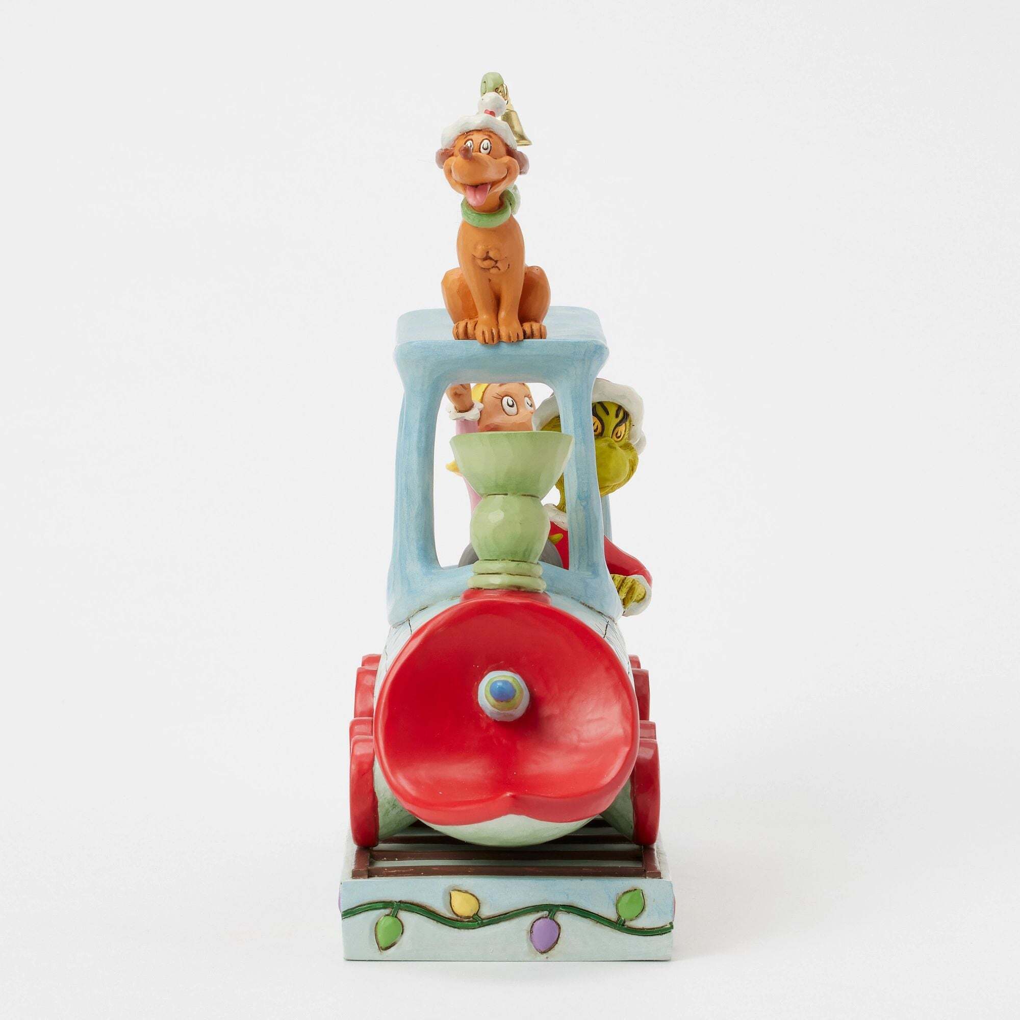 ¡Sube al Grinch Express! En esta encantadora figura de Jim Shore , el Grinch toma el control de una locomotora decorada. Max se sube encima mientras Cindy Lou toca una campana de verdad, ¡añadiendo un toque sónico! Diseñada por el galardonado artista y escultor Jim Shore para la Colección Grinch. Estas figuras no son juguetes para niños. Destinadas solo para adultos. Altura: 23,5cm
