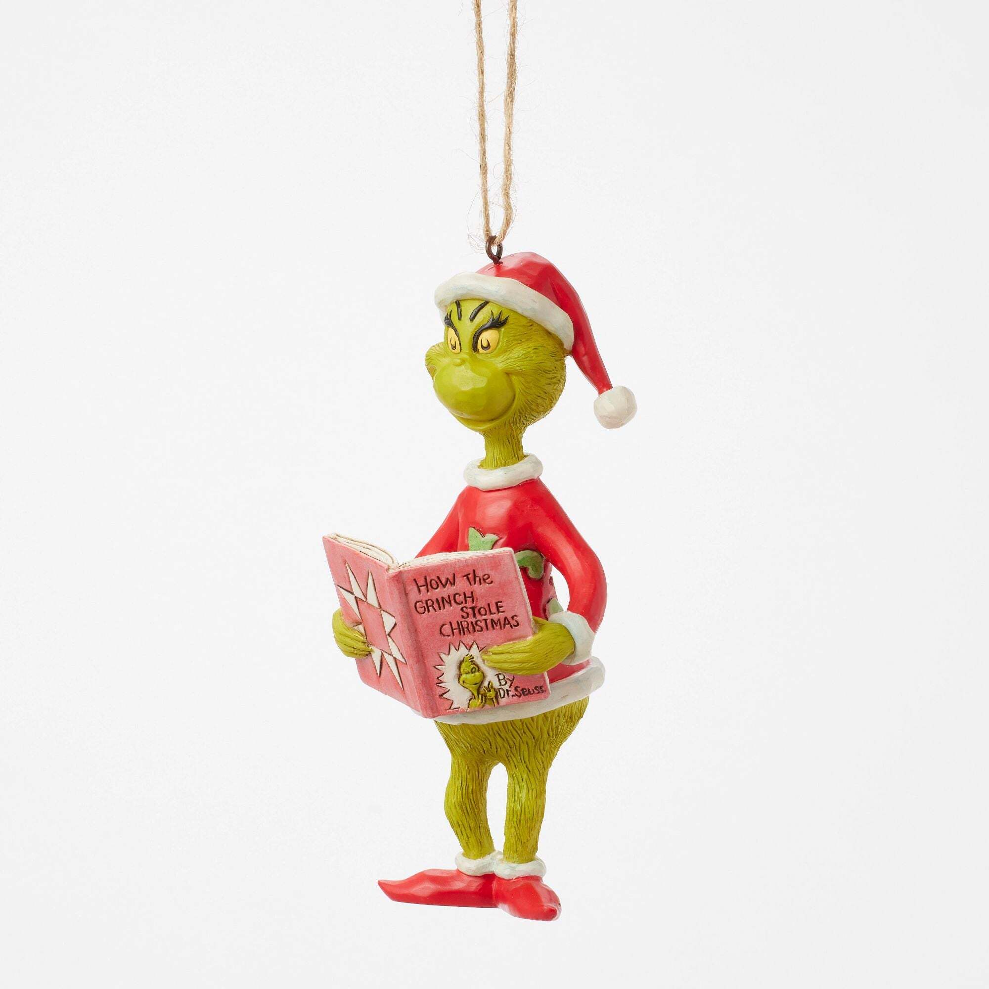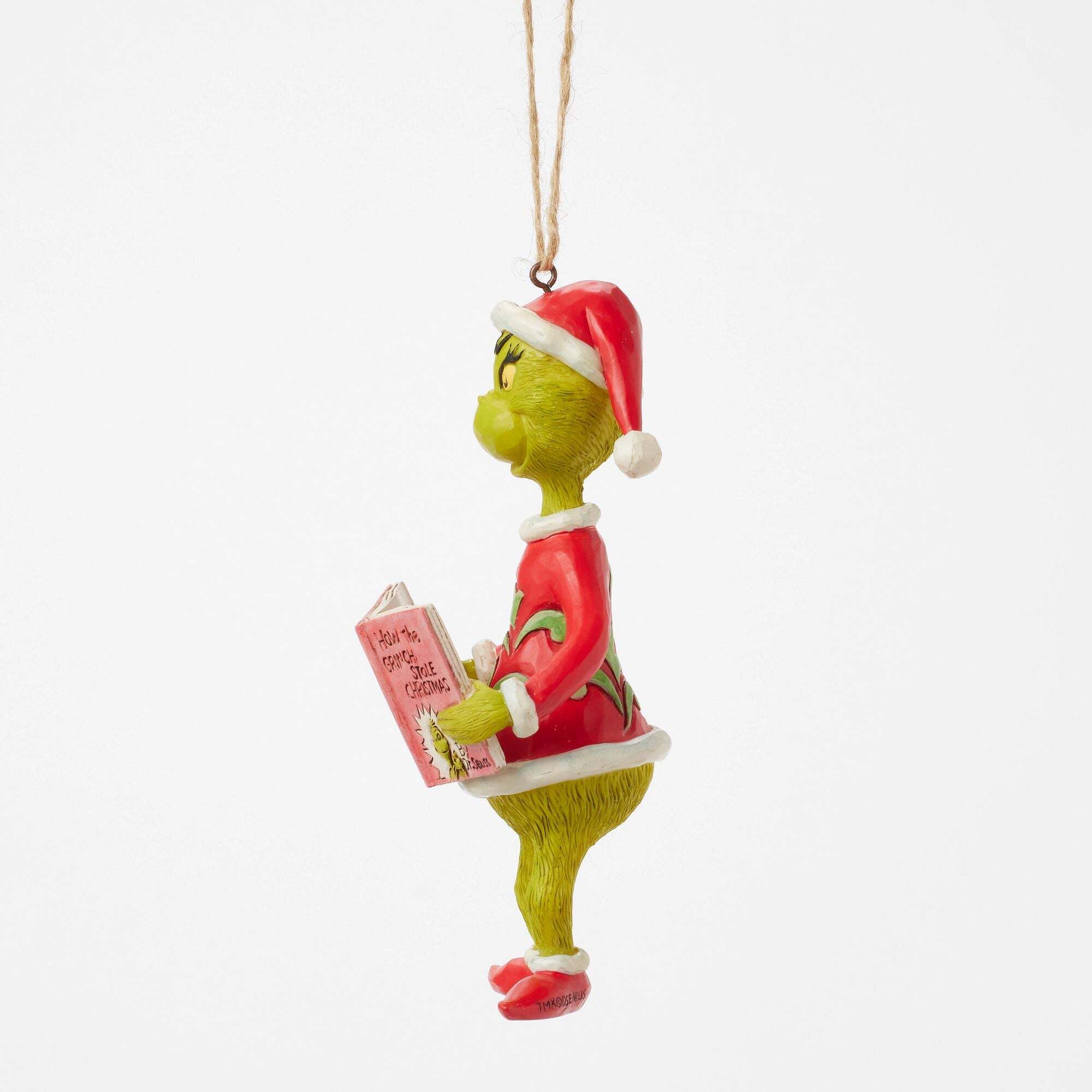 El Grinch, vestido con un traje Navidad , lee atentamente un ejemplar de "Cómo el Grinch robó la Navidad" del Dr. Seuss. Este adorno colgante de Jim Shore captura esta encantadora escena, mientras el Grinch se sumerge en su propia historia. Diseñado por el galardonado artista y escultor Jim Shore para la Colección Grinch. Estas figuras no son juguetes para niños. Destinadas exclusivamente para adultos. Altura: 13,5cm