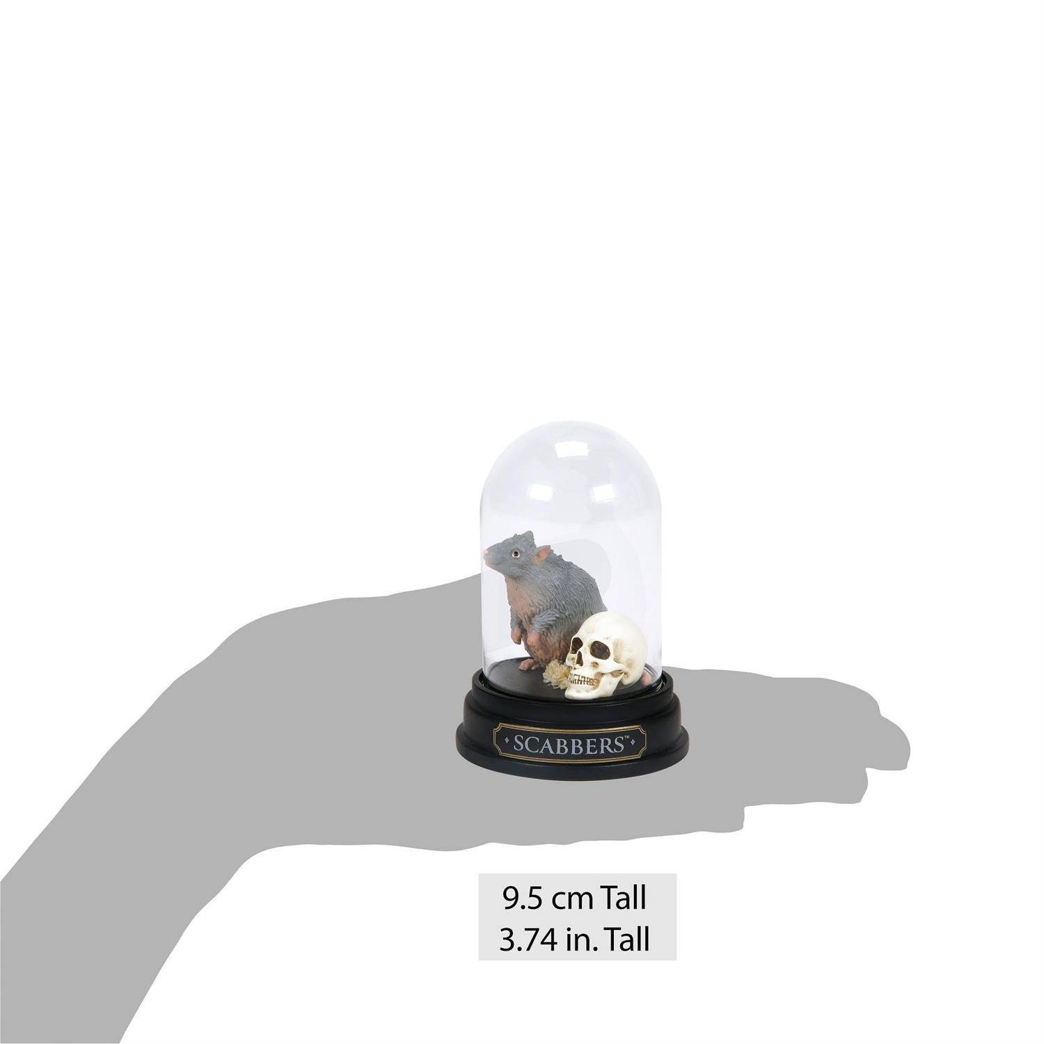 En el wizarding world , un animago es la bruja o mago con la capacidad de transformarse en un animal y volver a la forma humana. Peter Pettigrew, uno de los sirvientes más leales de Voldemort, posee este don y se esconde bajo la apariencia de la rata mascota de Ron, Scabbers. Esta figura en miniatura, meticulosamente esculpida y pintada a mano, así como el cráneo, se presentan bajo una cúpula de cristal 6 , evocando las travesuras del roedor encubierto. Todo está empaquetado en un embalaje completamente marcado.
