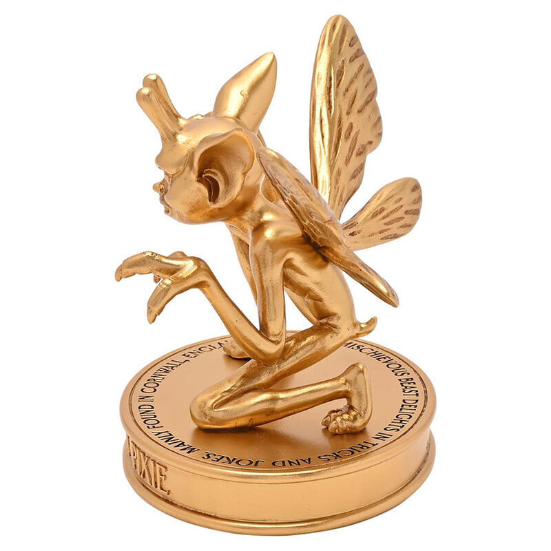 • El acabado dorado altamente detallado da vida a los rasgos de insecto del duende.