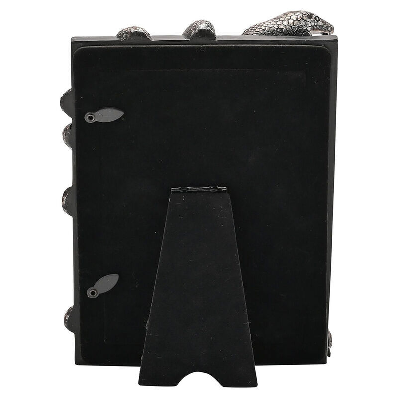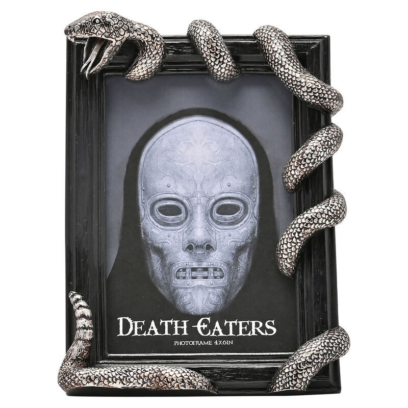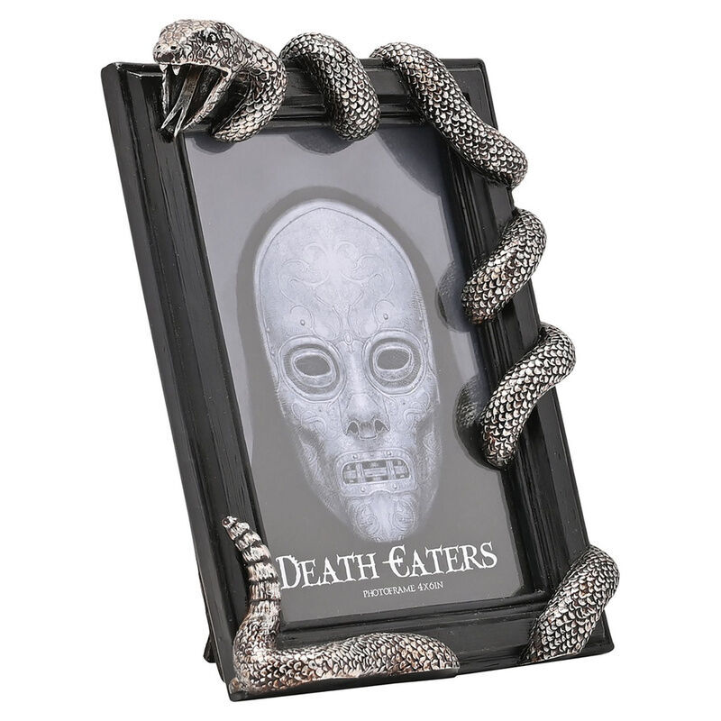 El acabado brillante realza los intrincados detalles, creando una pieza de colección visualmente impactante y de fina elaboración. Un marco de fotos independiente con una abertura rectangular de 10 x 15 cm y orientación vertical. Un cautivador homenaje al lado oscuro de la magia.