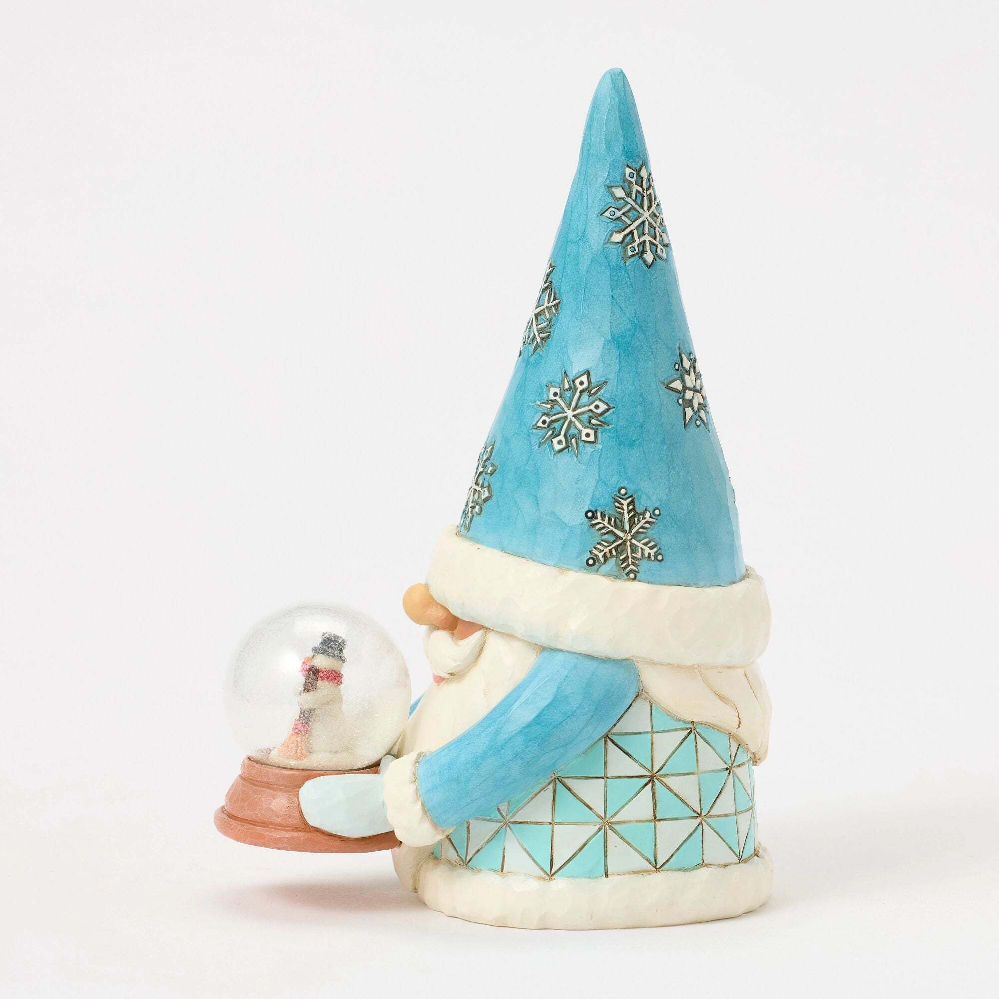 Este gnomo Navidad de Jim Shore luce un sombrero adornado con copos de nieve. También lleva una encantadora bola de nieve que representa una escena de muñeco de nieve en miniatura, capturando la magia de la temporada y añadiendo un toque cálido y mágico a tu decoración holiday.