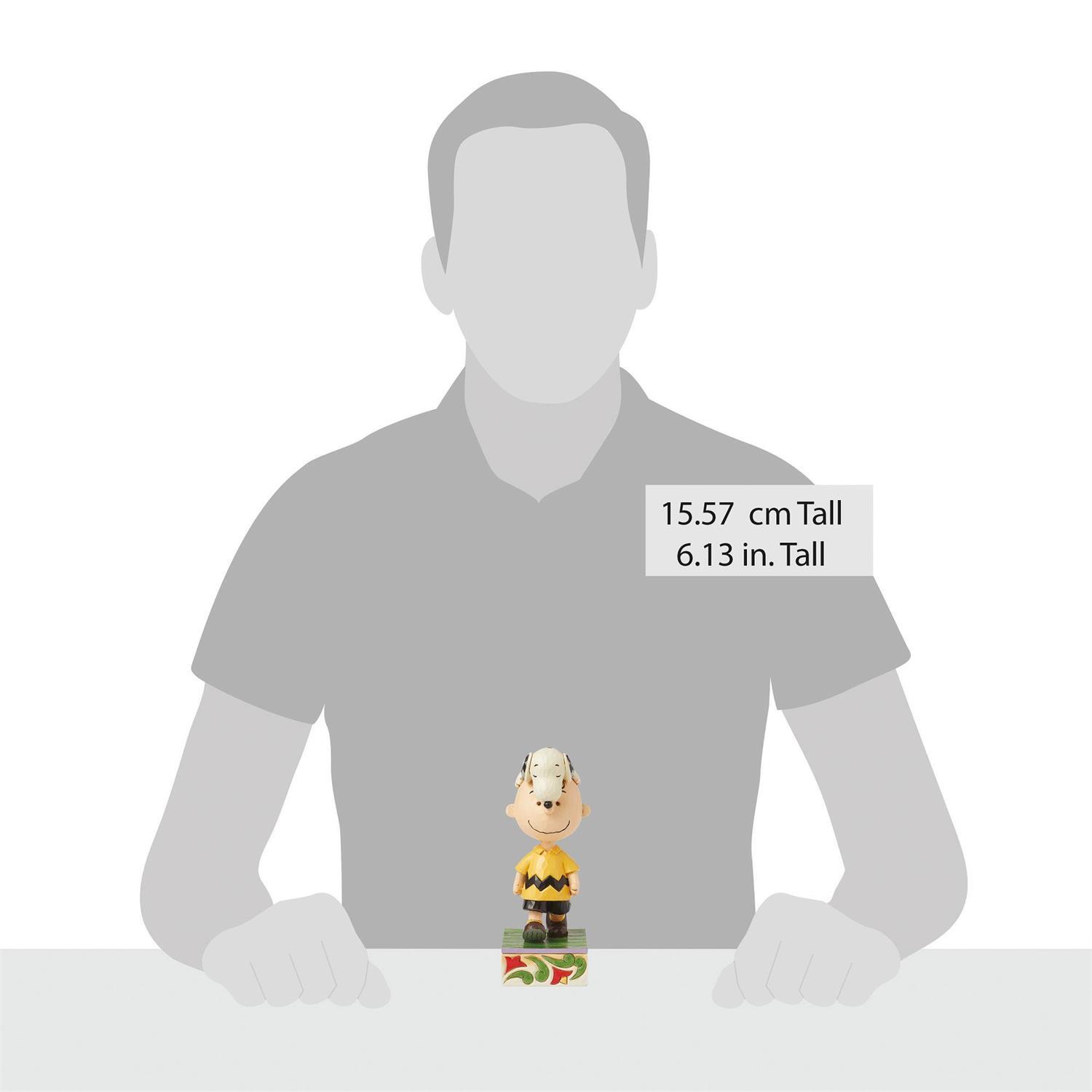 Jim Shore captura hermosamente el conmovedor vínculo entre Snoopy y Charlie Brown en este encantador busto, donde Snoopy dormita sobre la cabeza de Charlie mientras continúa con su día. Una escena con la que los dueños de mascotas celebran la alegría de la compañía.