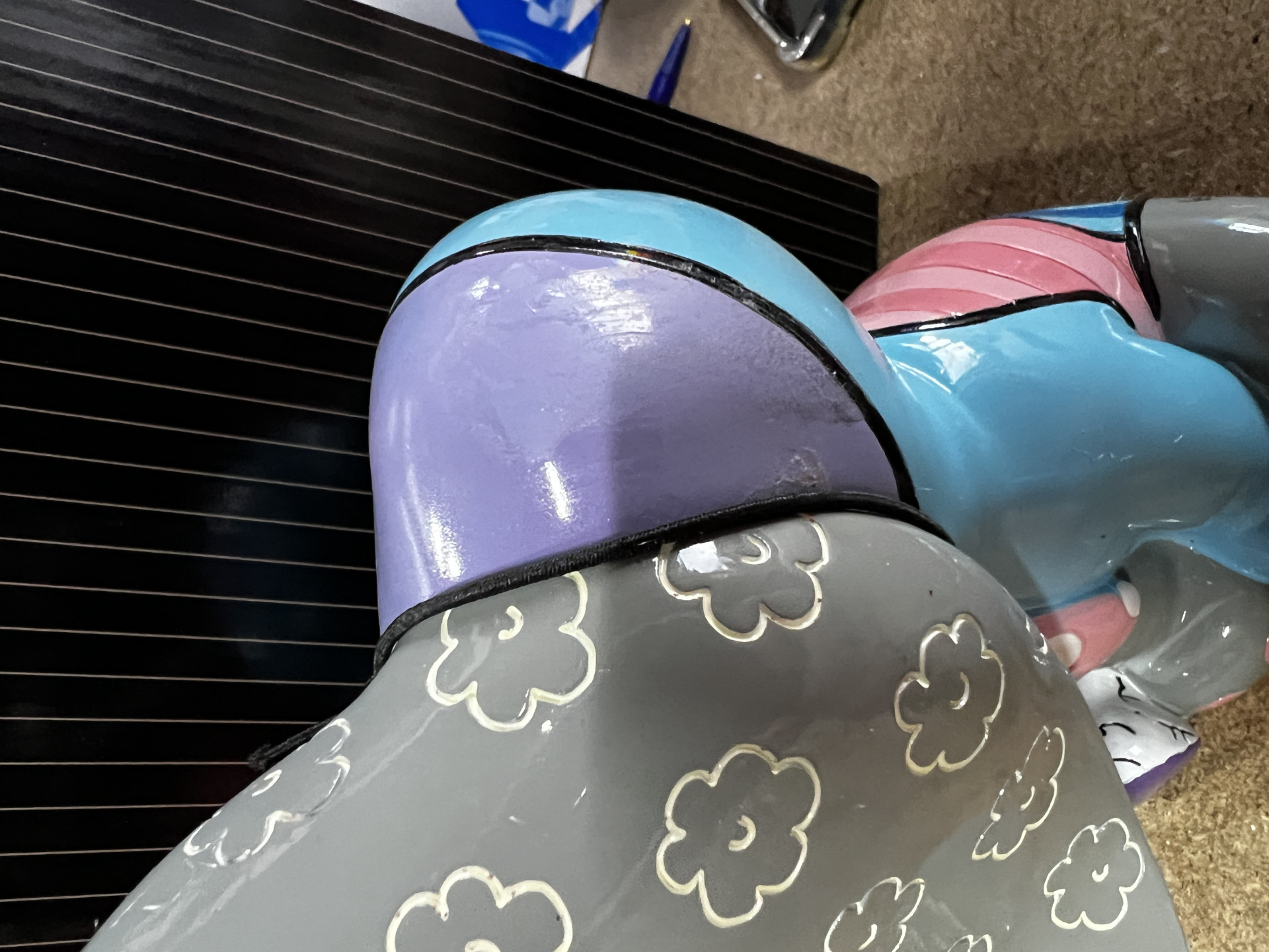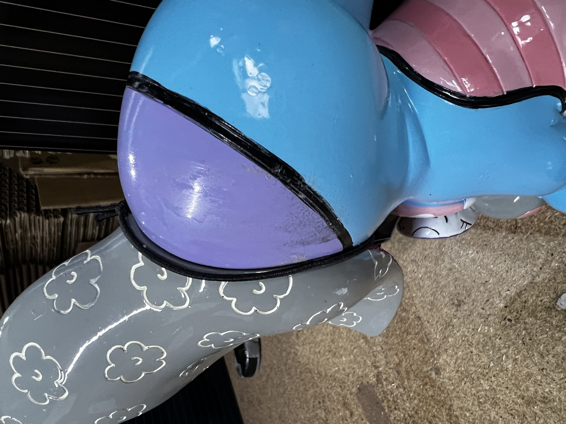 - defecto de pintura/pegamento en la parte posterior de la cabeza