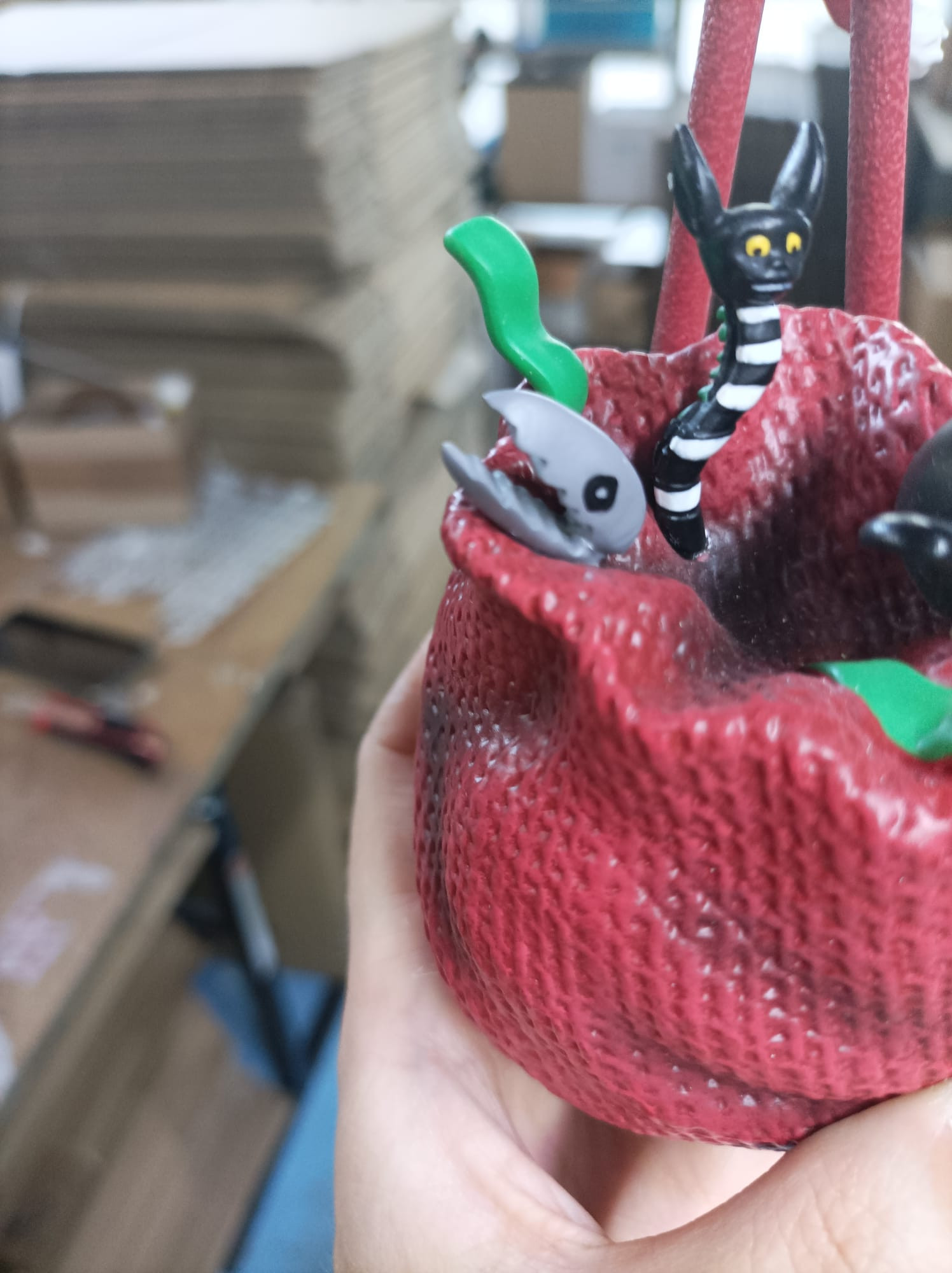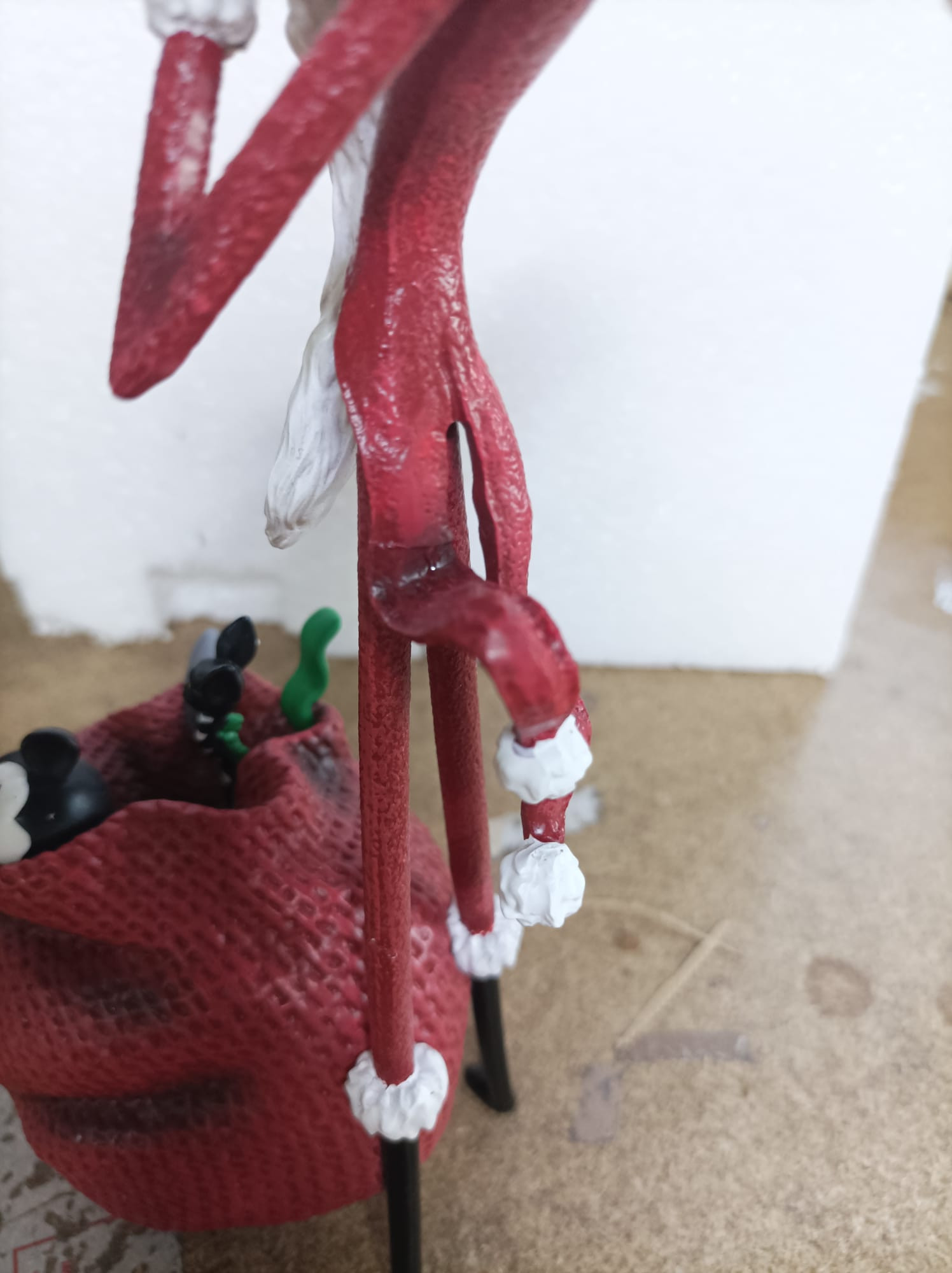 - La pequeña cabeza gris en el saco de Papá Noel ha sido pegada nuevamente