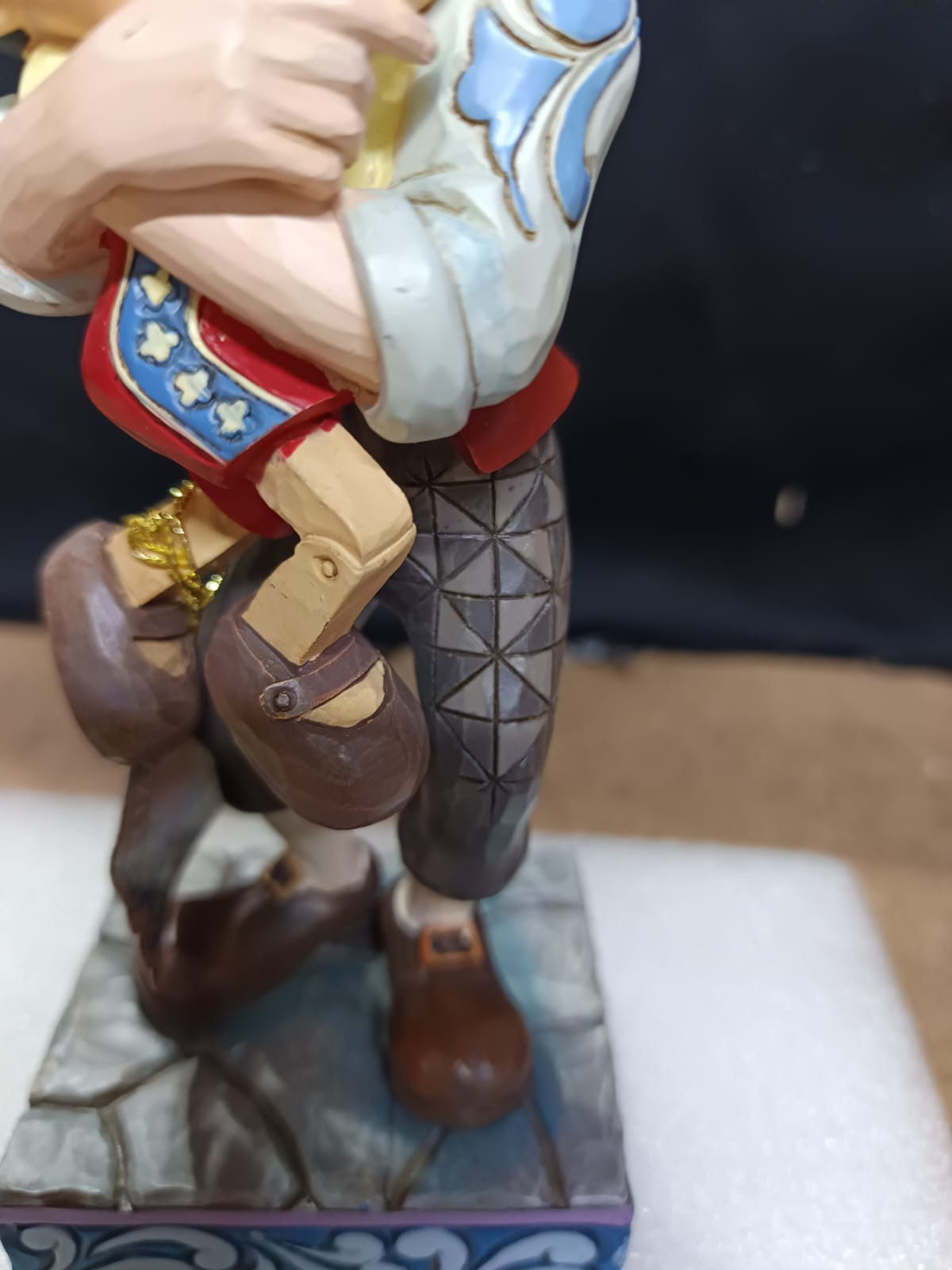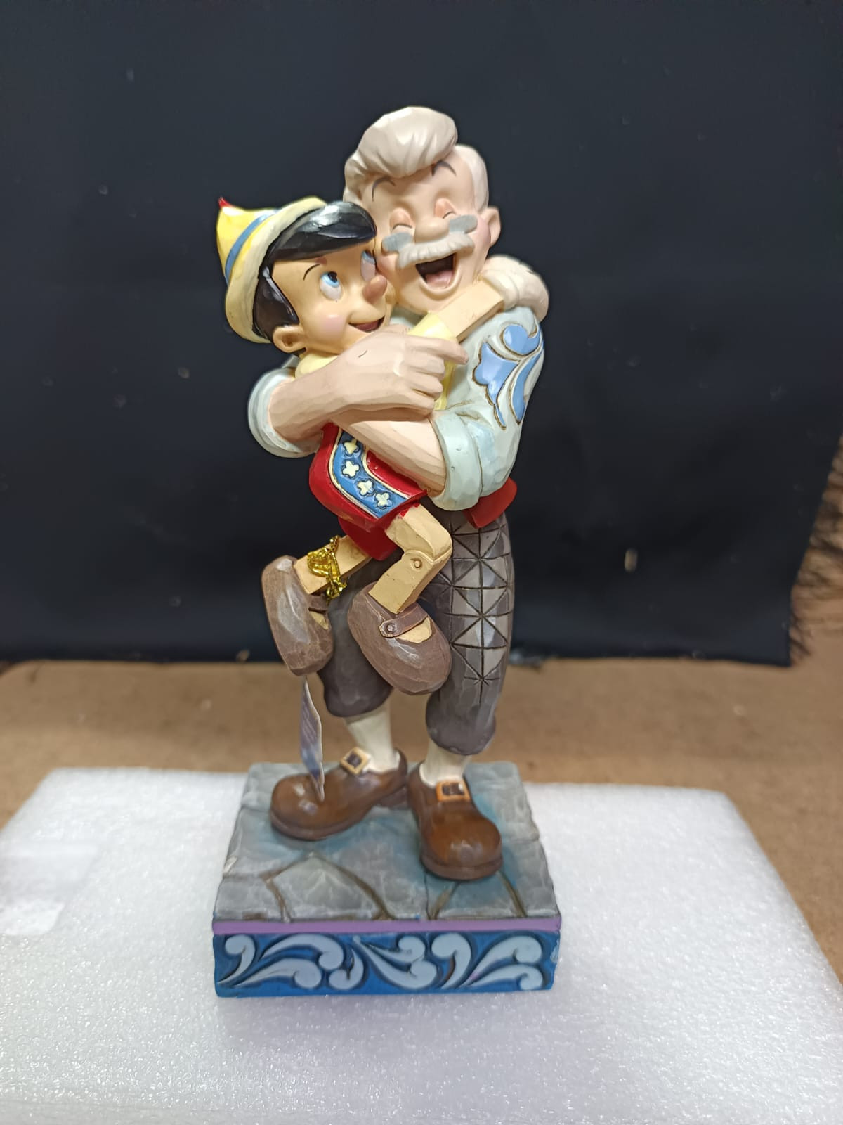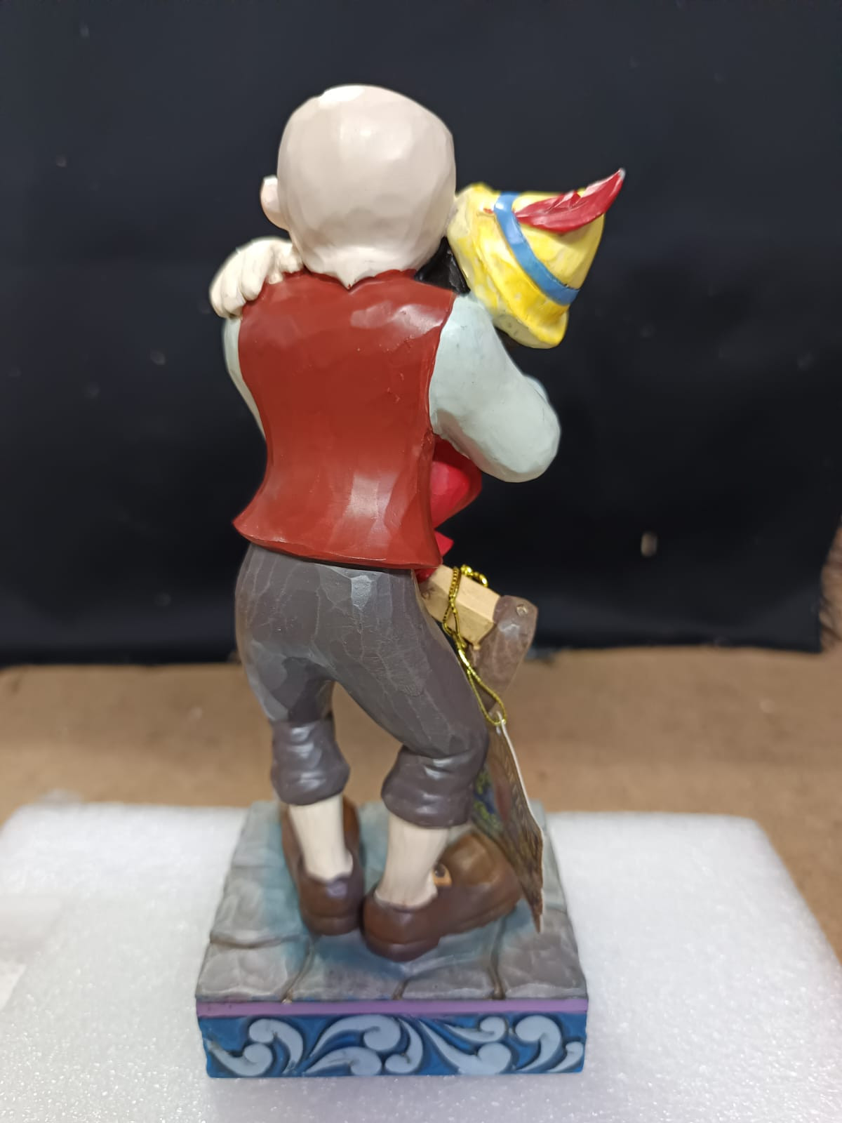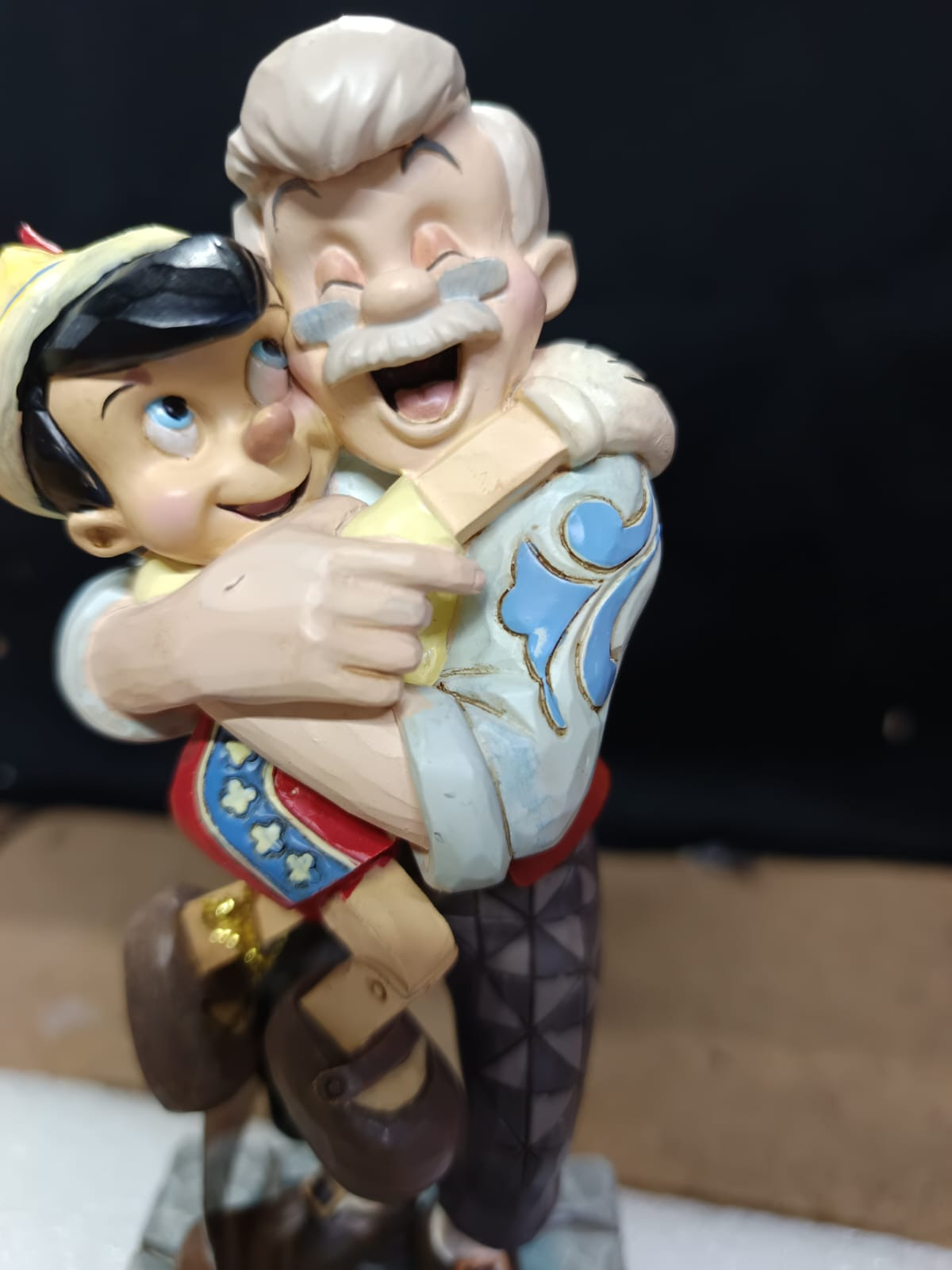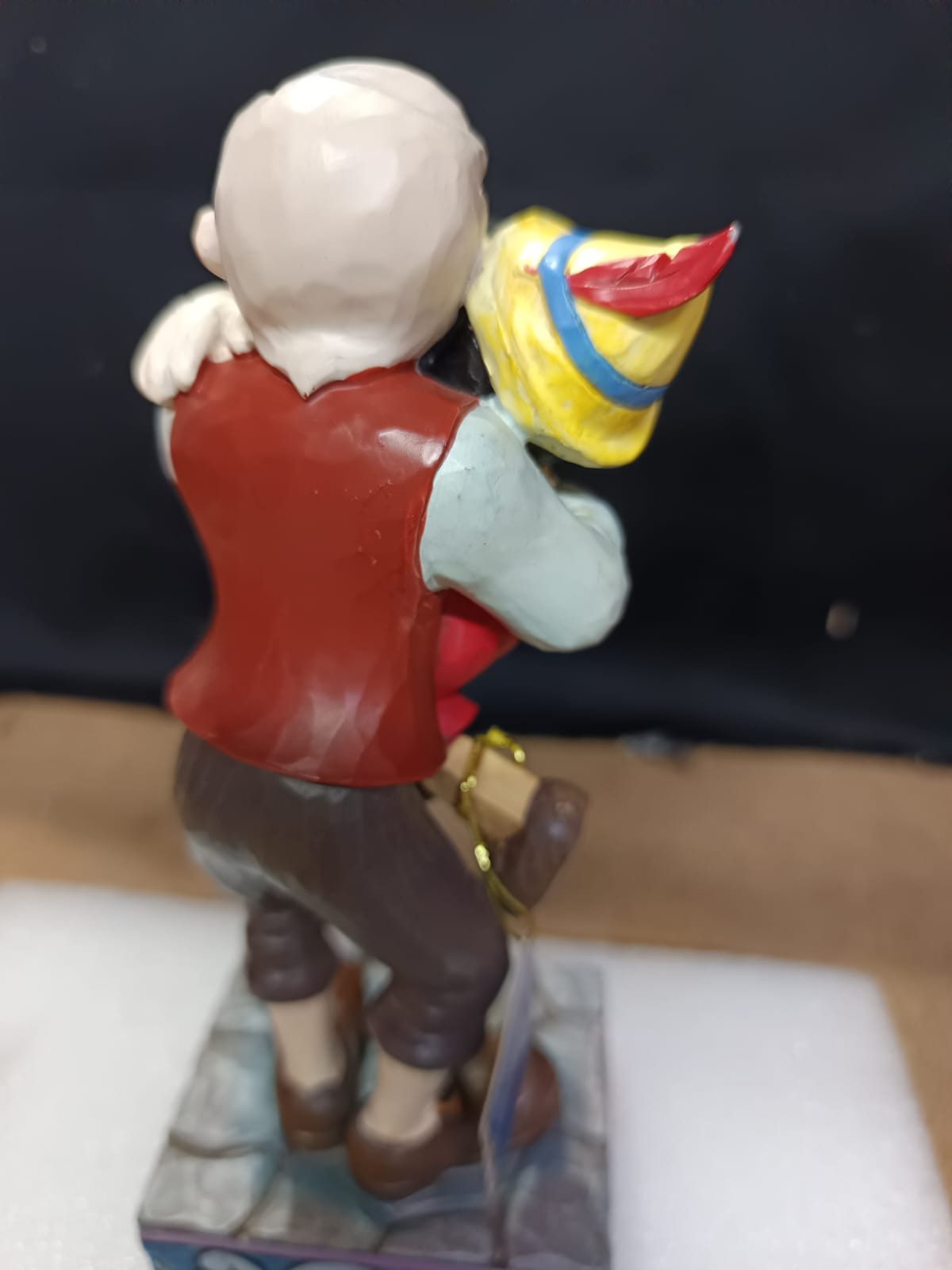 - Pequeños defectos de pintura en la frente de Pinocho, la mano de Gepetto y en la parte posterior de la chaqueta de Gepetto