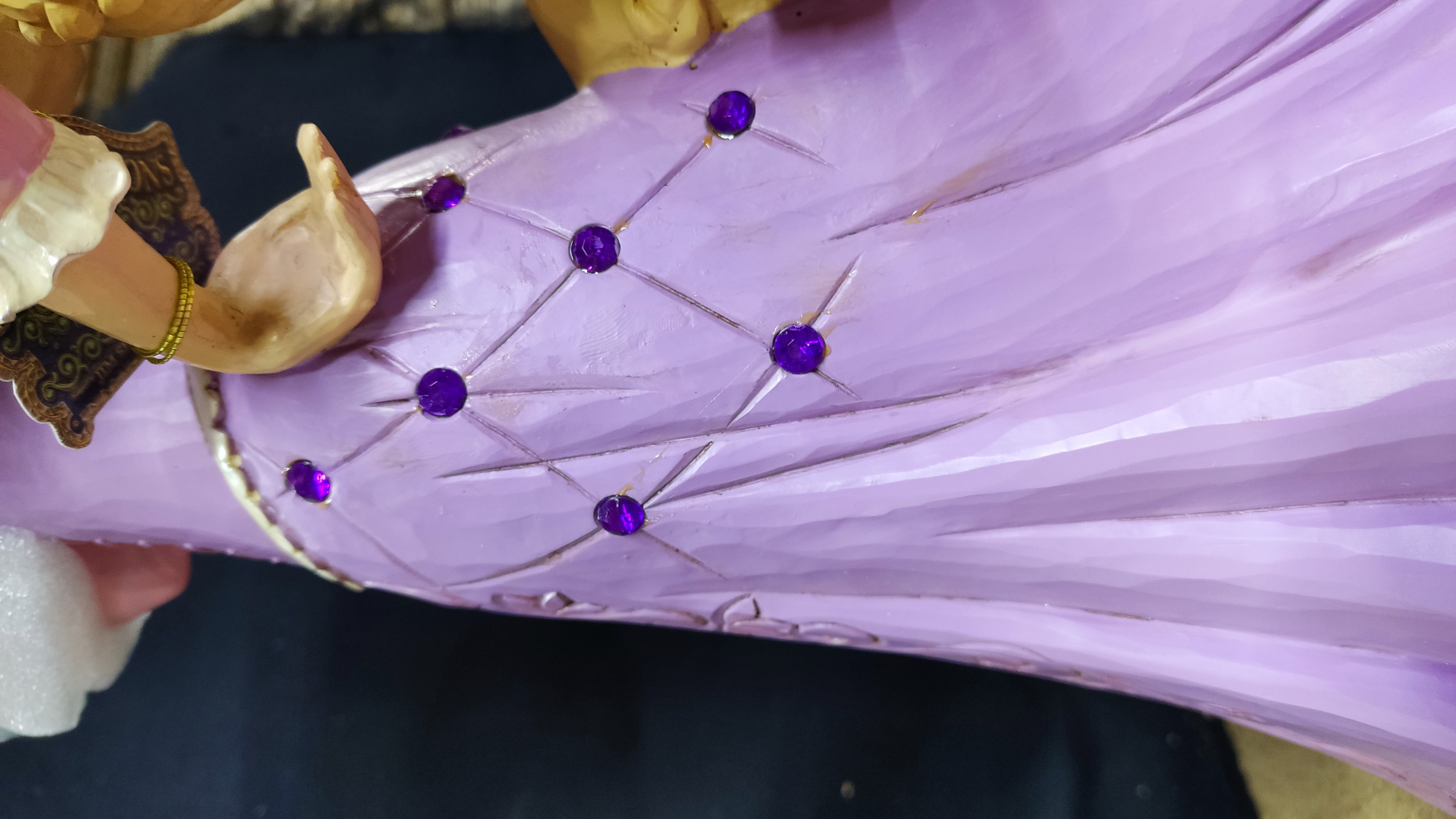 - Pequeños restos de pegamento en el vestido