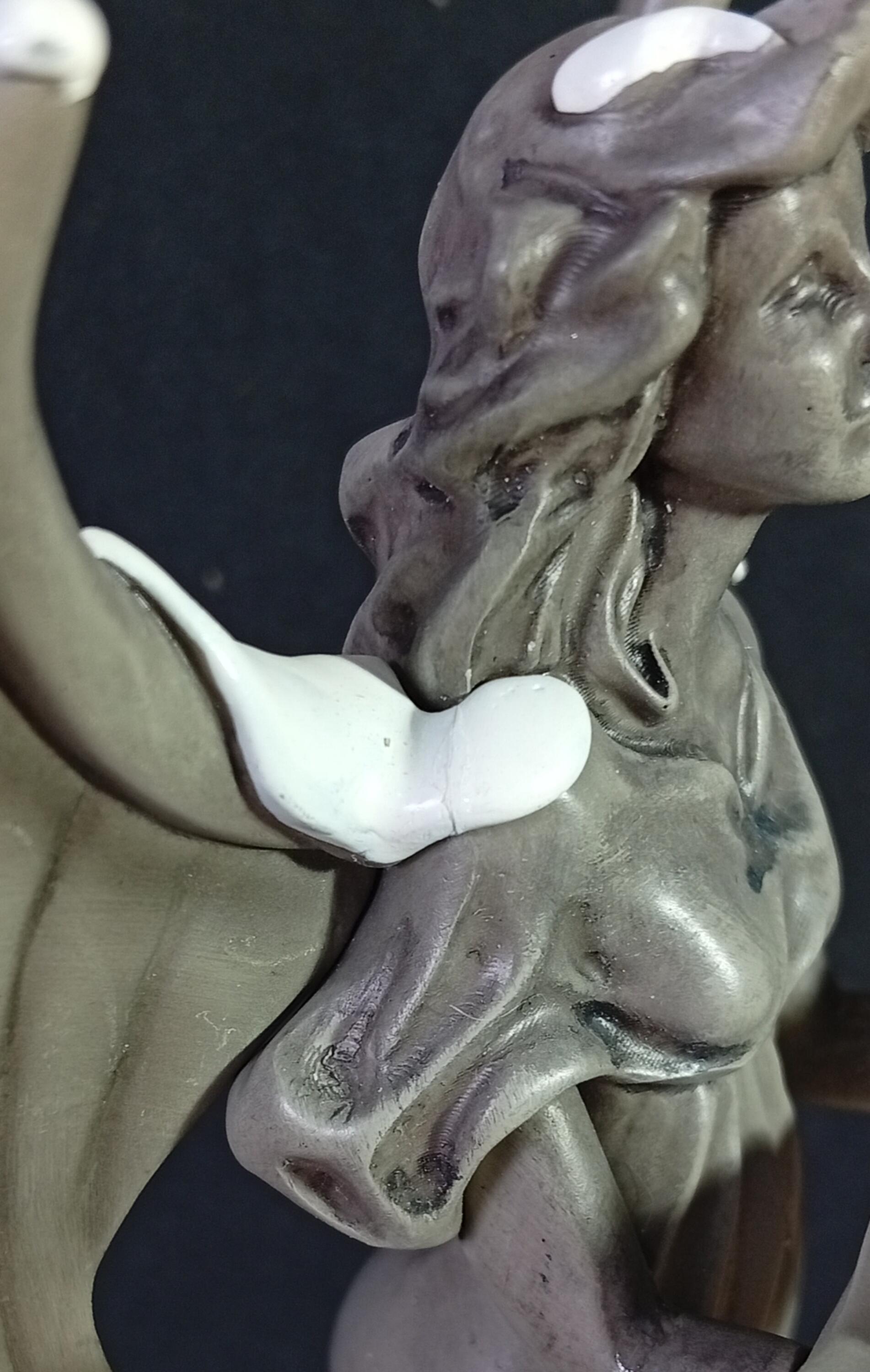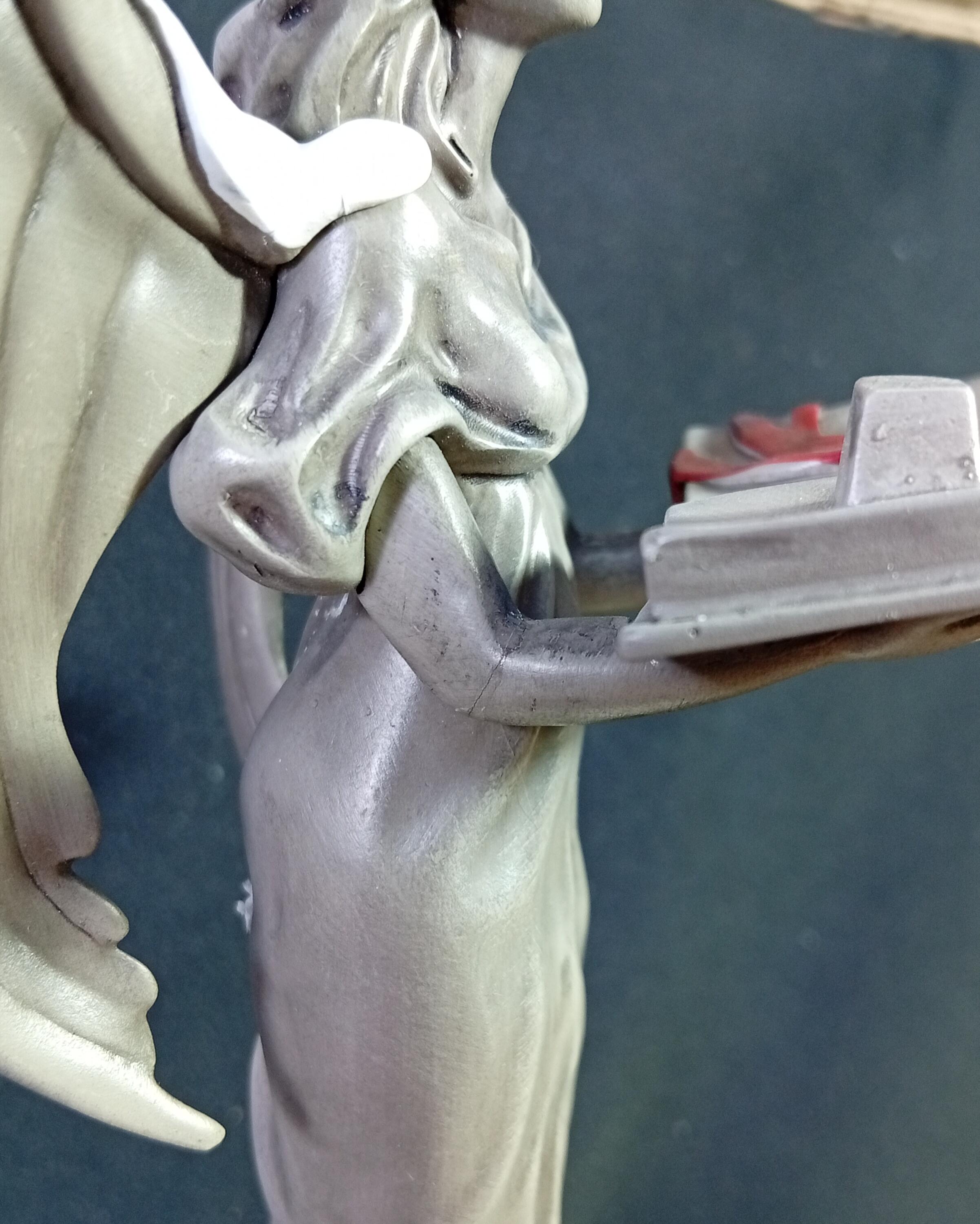 - El ala y el brazo del ángel han sido reparados con pegamento.