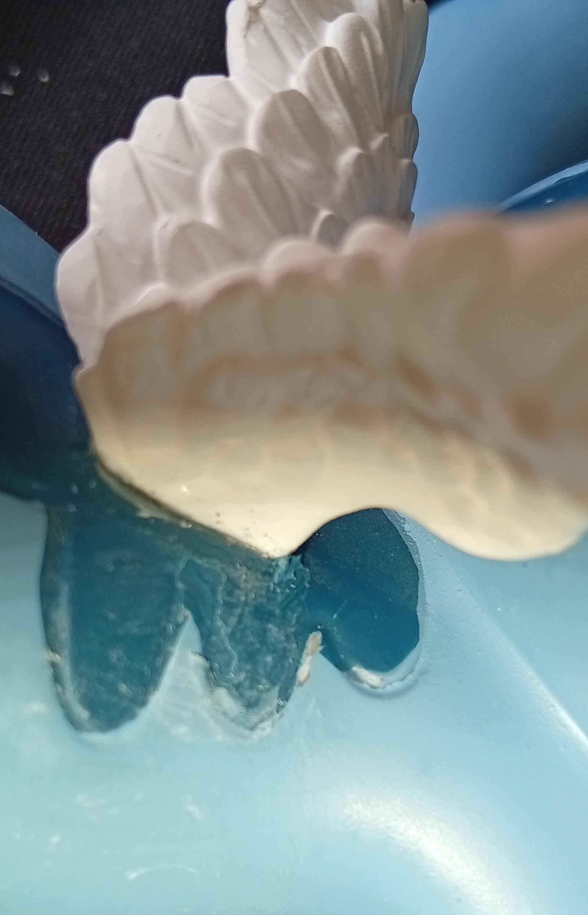 - Las alas han sido re-pegadas.