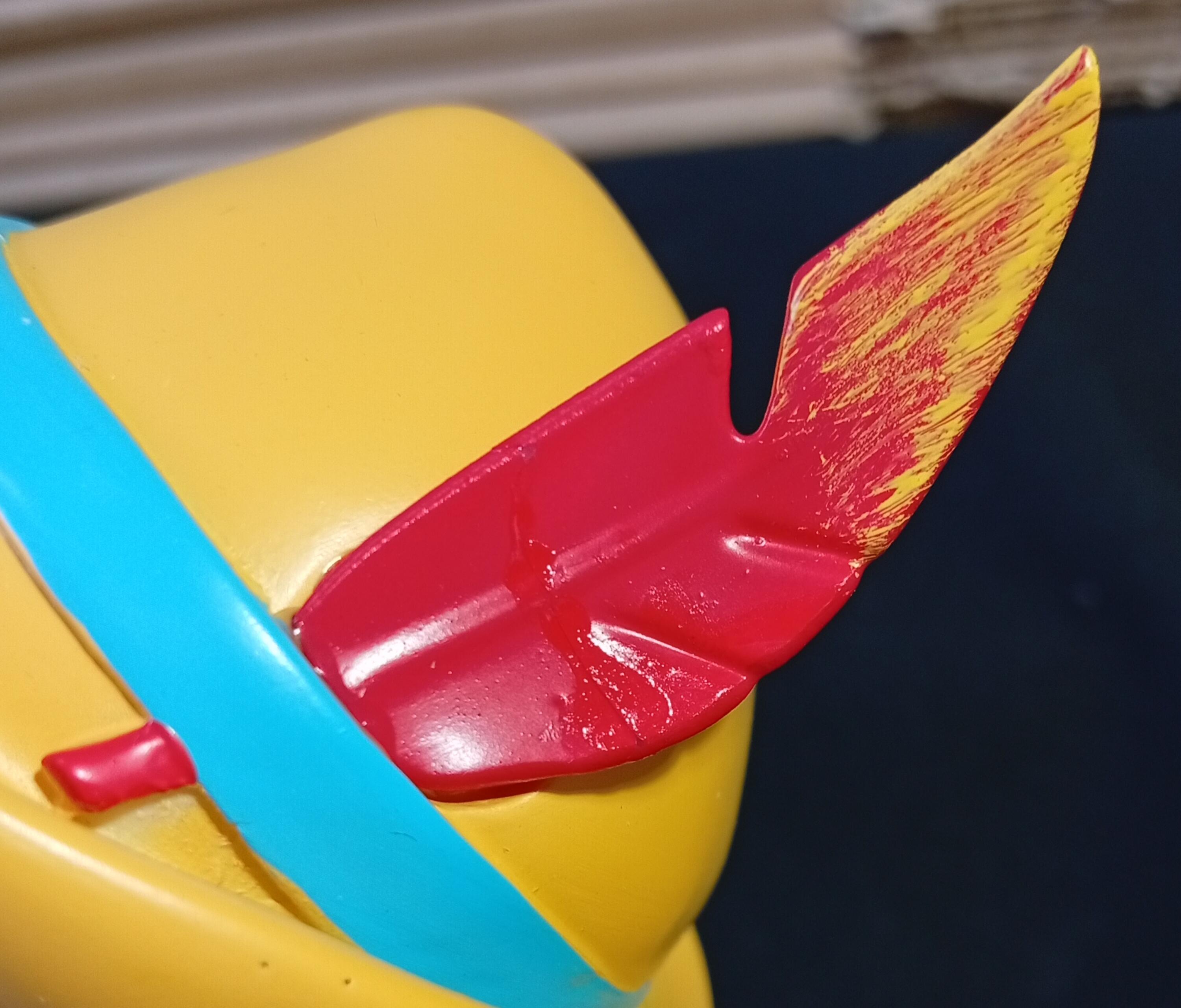 - La pluma del sombrero de Pinocho ha sido pegada de nuevo