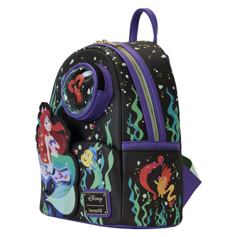 ¡Una sensación sinfónica, creada por un crustáceo memorable, está al alcance de la mano! Toca la banda y nada a casa con nuestra colorida Mini Mochila Loungefly Disney La Sirenita 35th Anniversary “Life is the Bubbles”.