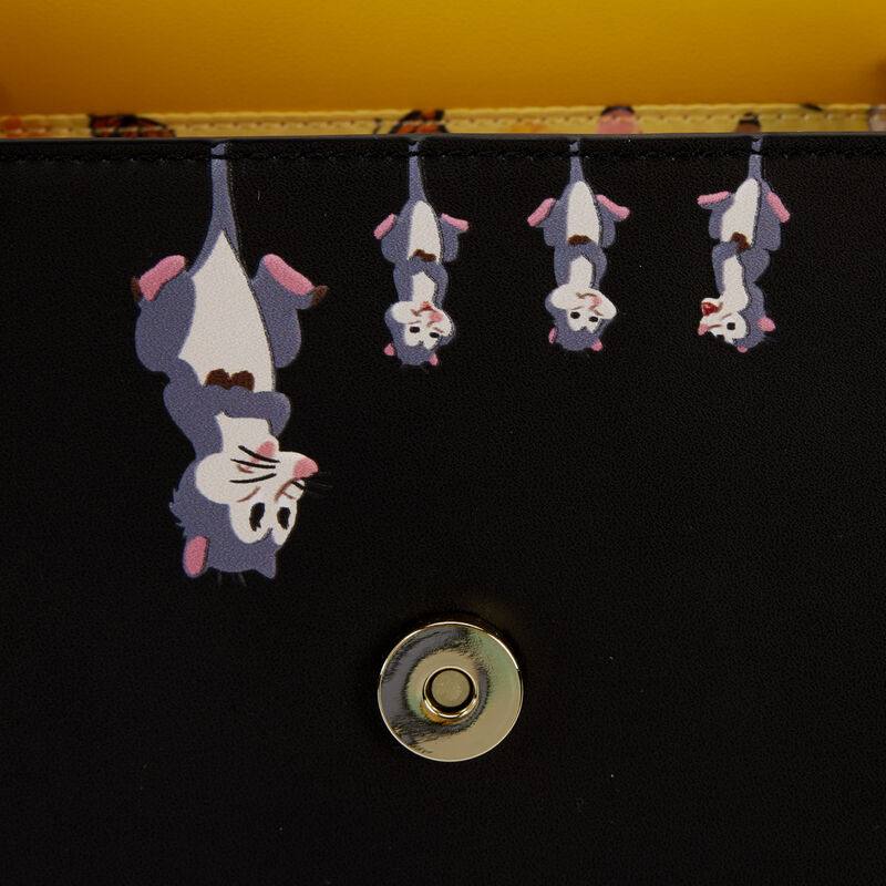 Debajo de los pétalos dorados de la flor, Bambi, Tambor y La Conejita se asoman desde un campo en flor. ¡Levanta la solapa para revelar una familia oculta de zarigüeyas dando vueltas! Cuadros en blanco y negro cubren los costados del bolso y continúan hasta la correa para el hombro de arriba, donde los apliques de girasoles enmarcan cada extremo. Gira la bolsa para ver a Flower escondida en un campo de girasoles. Este bolso bandolera es un complemento radiante para cualquier conjunto y es perfecto para los fans de Disney que buscan tener cerca a sus personajes favoritos.