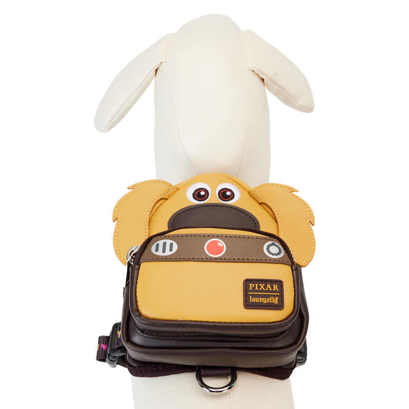 La Mini Mochila Loungefly Disney-Pixar Up 15th Anniversary Dug Cosplay está hecha con material duradero cuero vegano (poliuretano). El arnés tiene correas de nailon ajustables y herrajes plateados brillantes. Las características adicionales incluyen apliques y detalles grabados. Tome nota del forro interior a juego.