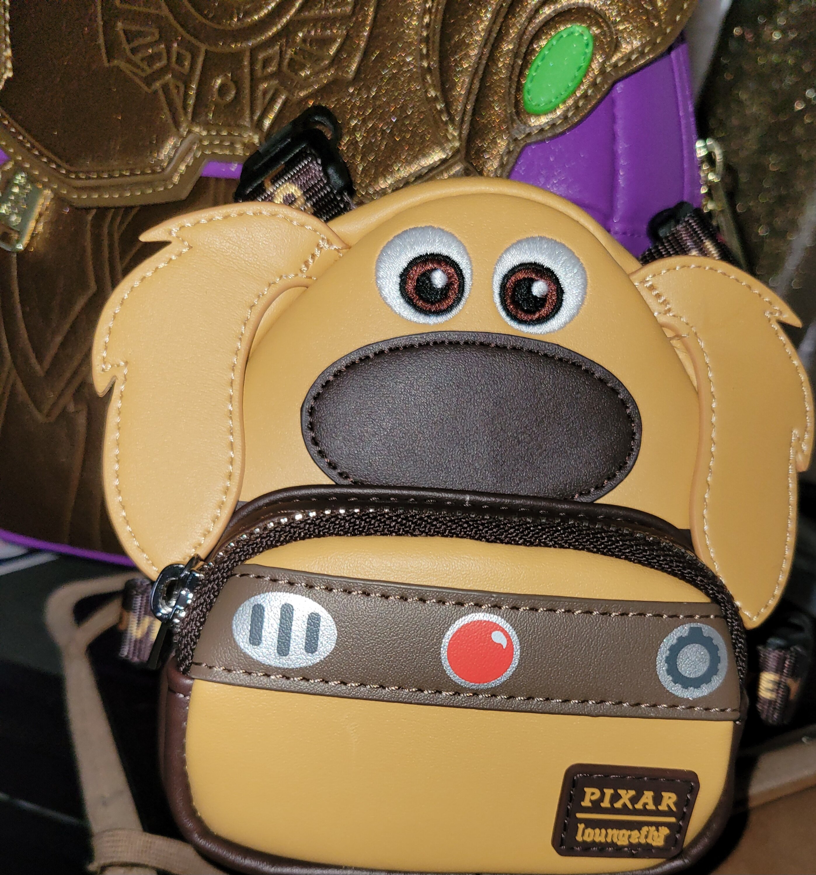La Mini Mochila Loungefly Disney-Pixar Up 15th Anniversary Doug Cosplay está hecha de material duradero . cuero vegano (poliuretano). El arnés tiene correas de nailon ajustables y herrajes plateados brillantes. Las características adicionales incluyen apliques y detalles grabados. Fíjate en el forro interior a juego.