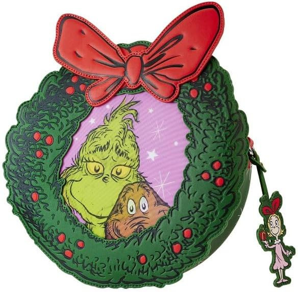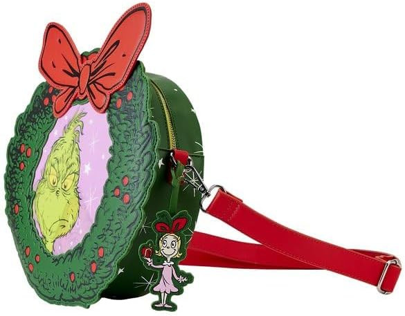 DR SEUSS GRINCH bandolera con figura de corona navidad - DISNEY LOUNGEFLY DR SEUSS GRINCH bandolera...