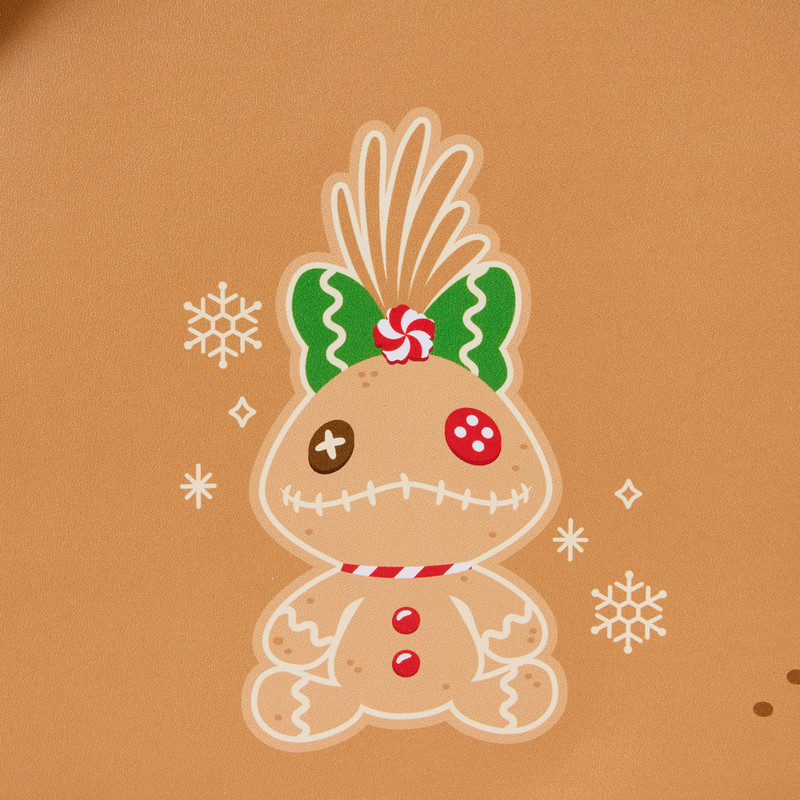 Rompe el mercado de las galletas con un accesorio nuevo y dulce. Stitch de Disney es fresco y divertido como una mini mochila con temática de pan de jengibre. ¡Y esta mochilas tiene un aroma a pan de jengibre! Encontrarás mucho glaseado festivo y deliciosos "dulces" de apliques también. Las orejas de apliques de Stitch se elevan por la parte superior y sus ojos cobran vida con detalles bordados. Un lazo de apliques 3D en verde adorna el bolsillo delantero. Da vuelta la mochilas y encontrarás un estampado de Scrump, también en forma de pan de jengibre. Guarda esta mochilas con todo lo que necesitas para pasar el día disfrutando de la temporada y saboreando tus recuerdos favoritos.