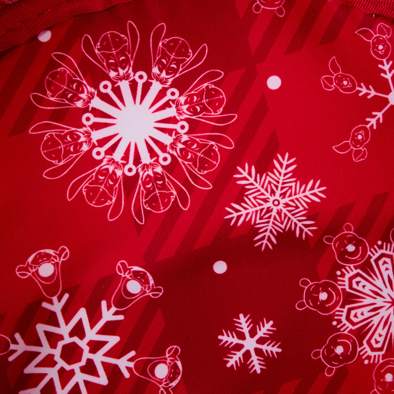 ¡El Bosque de los Cien Acres luce festivo! Únete a la diversión con nuestro bolso bandolera de Winnie the Pooh de Disney. Este accesorio con forma de corona, totalmente figurativo, está lleno de detalles festivos. Un aplique de Winnie the Pooh, vestido para la temporada, aparece en el medio de la "corona", y sostiene un tarro de miel. Estampados de abejas y luces de colores lo rodean. ¡En la oscuridad, las luces brillan! En el reverso, un remache permite que el trasero de Pooh se balancee hacia adelante y hacia atrás, mientras está atrapado en la corona. Haz que la temporada sea aún más brillante y alegre con este dulce accesorio.