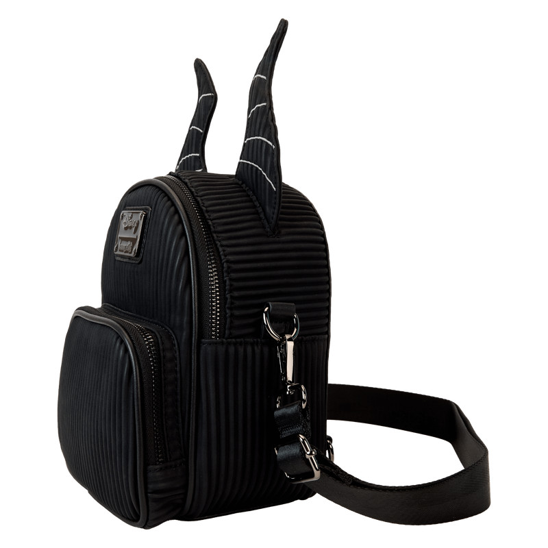¡Que suenen los cuernos! Es hora de arruinar la fiesta con estilo. Nuestra mochilas convertible de Maléfica de Disney es perfecta para guardar algunos regalos. Este elegante accesorio completamente negro se convierte en un bolso bandolera con la ayuda de correas ajustables y desmontables. La pana, en la parte delantera y los laterales, añade un detalle de textura maravillosamente perverso. En la parte superior, se elevan los cuernos característicos de Maléfica, y un dije de cremallera de piel sintética, en forma de cola de dragón, añade un toque terriblemente divertido. Empaca tus elementos esenciales diarios y disfruta de todo las aventuras divertidas que tu corazón oscuro desea.