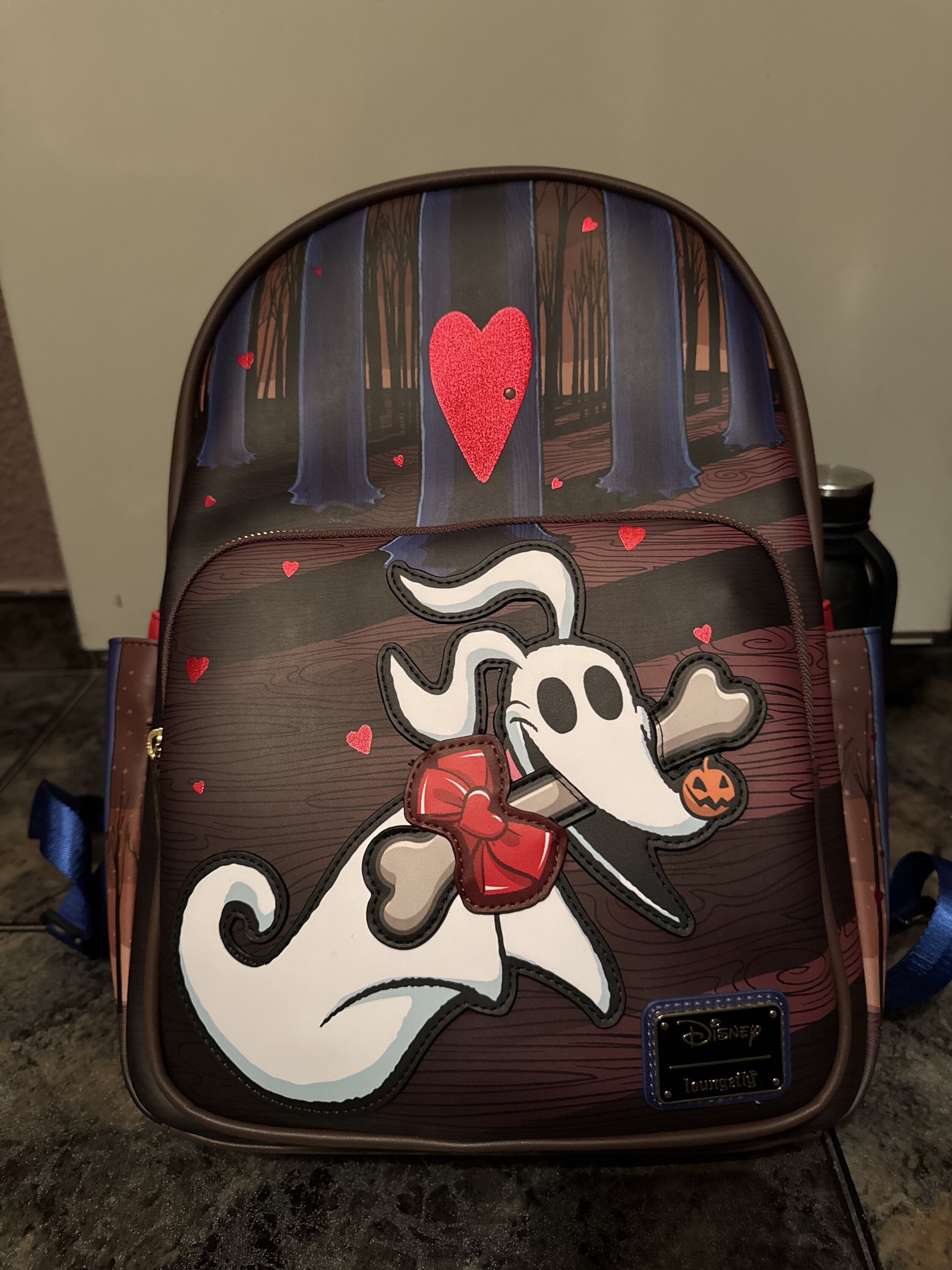 ¡Los mejores amigos para la eternidad! Demuestra tu amor por este cachorro fantasmal con una mochilas de tamaño completo diseñada para emocionar. Mírala de cerca y verás una puerta en forma de corazón que lleva a otro mundo. Con tantos detalles que harán gritar, este accesorio es un artículo imprescindible para los fanáticos de la película de Disney Tim Burton Pesadilla antes de Navidad