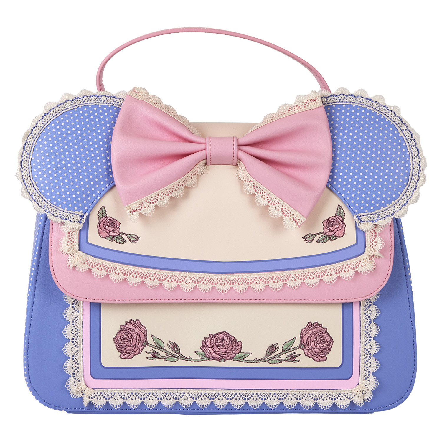 La Moda está de moda con este bolso bandolera de Minnie Mouse de Disney. Los detalles especiales de Minnie Mouse le dan un toque encantador. Sus orejas de aplique, decoradas con un estampado de lunares, sobresalen por encima del bolso, y el ribete de encaje le da un toque delicado. Luce un lazo rosa 3D en el centro de la solapa delantera, y rosas bordadas en la parte delantera y trasera se despliegan con detalles decorativos. Empaca tus imprescindibles, lánzate a la aventura y disfruta de la diversión.