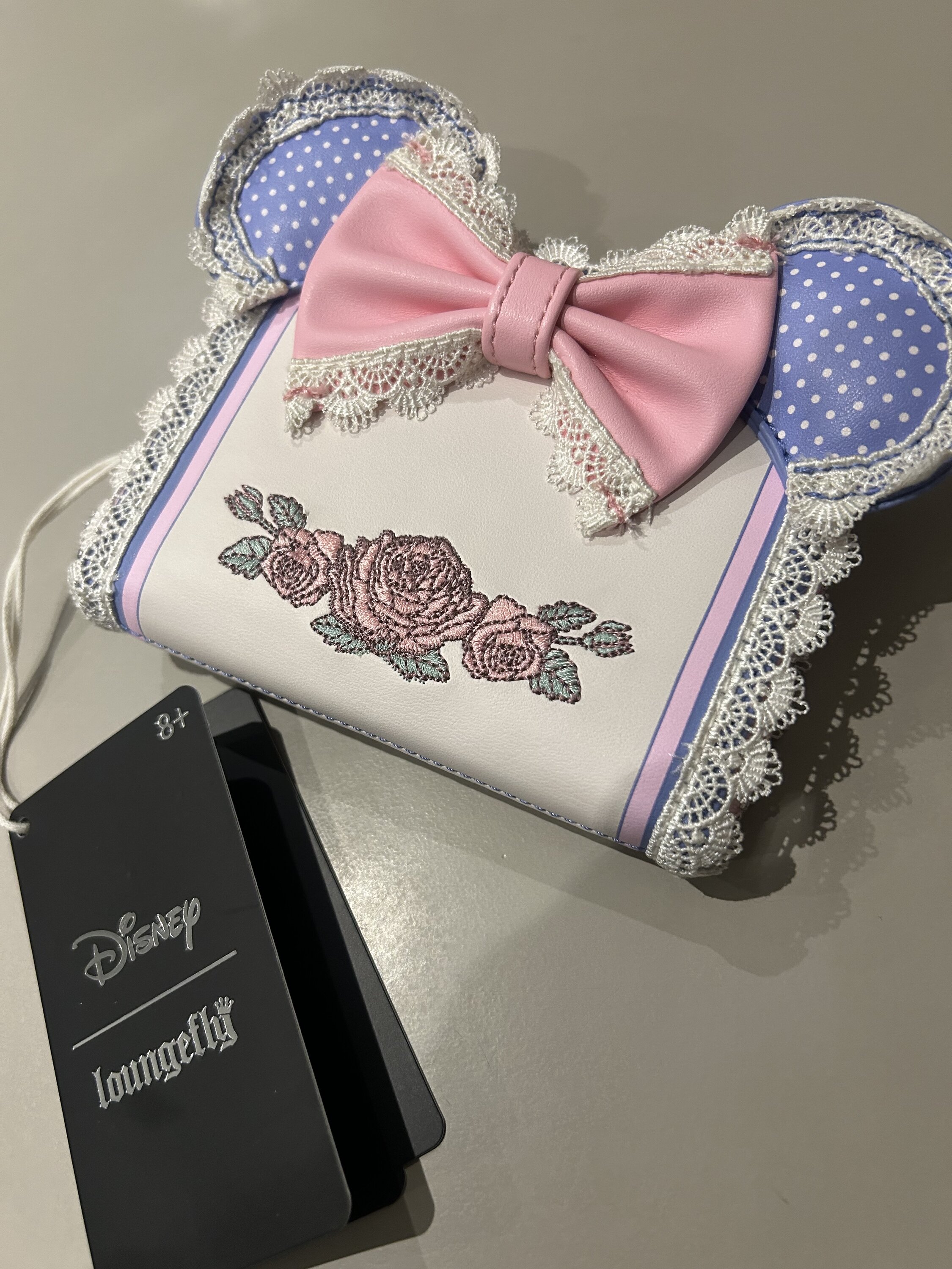 Très beau et mignon portefeuille Minnie style champêtre 🌸 Comme d’habitude le soucis du détail est de nouveau présent jusqu’au contour rempli de belle dentelle, tout en passant par les oreilles de Minnie légèrement rembourrées. Les couleurs et les broderies sont absolument magnifiques. 😻