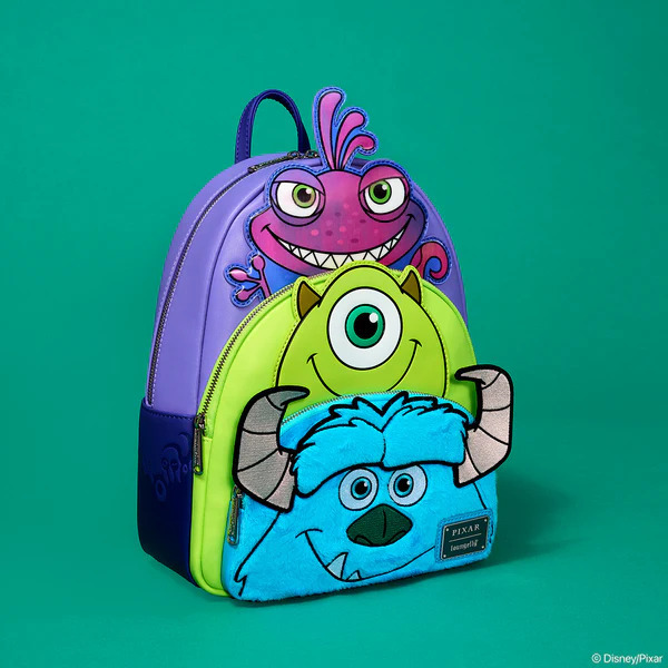 ¡Qué ganas de tener esta mini mochila de tres bolsillos! Sully, Mike y Randall de Monsters, Inc. ocupan cada uno un bolsillo. ¡Pero eso no es todo! Sully está cubierto de piel sintética y Randall tiene una función lenticular que cambia de color al mover la mochila. ¡Esta divertida mochila tiene mucho espacio para guardar tus objetos esenciales mientras estás fuera! ¡Añádelo a un bolso divertido, muéstralo como una pieza genial o úsalo como tu nuevo bolso favorito para todos los días!