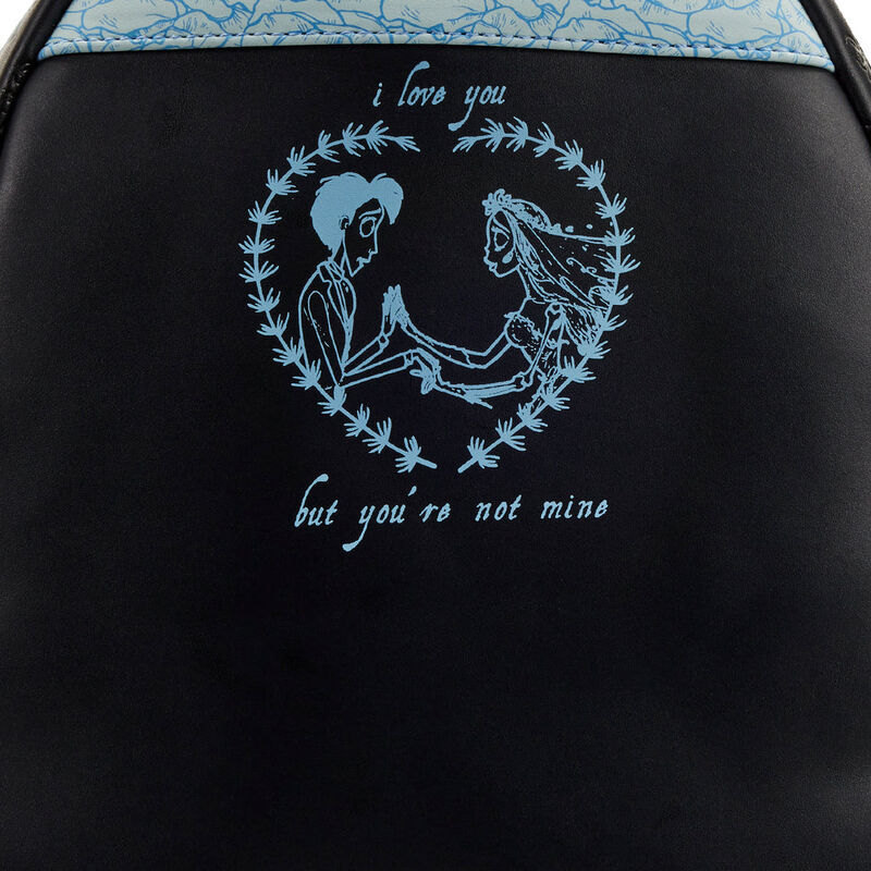 La Mini Mochila Emily Bouquet de Loungefly , de la Novia Cadáver, está hecha de cuero vegano (poliuretano). Cuenta con correas ajustables para los hombros y herrajes metálicos resistentes. Además, incluye flores artificiales, apliques, detalles en bajorrelieve y estampados. Destaca el forro interior a juego.