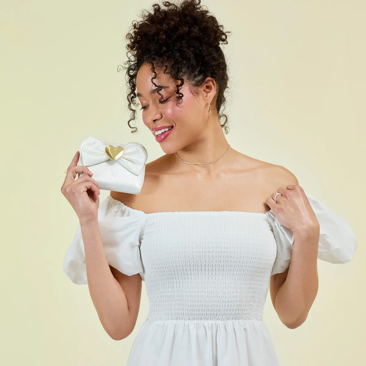 ¡Haz que tu celebración del amor sea aún más especial con la magia de Disney ! Esta cartera con cremallera tiene orejas de Minnie Mouse en 3D y un lazo en 3D con encaje iridiscente. Le da un toque brillante a tu conjunto. Si buscas celebrar tu boda con accesorios o un regalo para una futura novia, ¡este es el detalle perfecto! Esta cartera mantendrá tus objetos esenciales seguros durante tu gran día y más allá.