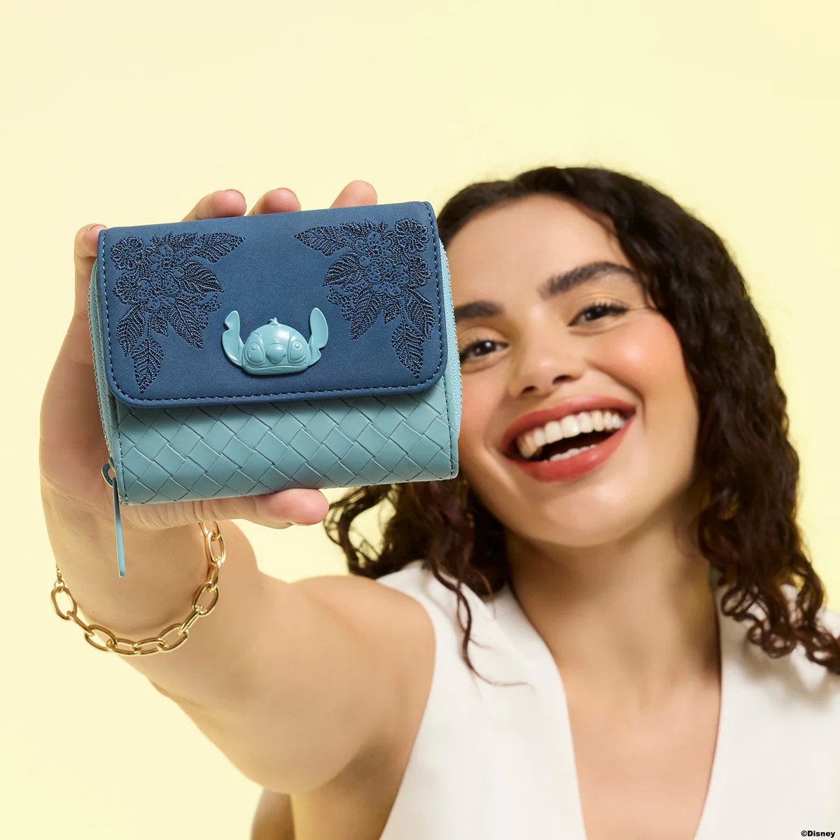 ¿Una forma adorable de presumir de tu fanatismo? ¡Tu billetera! Esta billetera tiene un dije de metal moldeado de Stitch en la parte frontal con detalles florales bordados a su alrededor. En el interior, encontrarás muchas ranuras para guardar tus tarjetas y dinero, ¡y la ranura transparente para identificación tiene la silueta de Stitch recortada! ¡Es DEMASIADO LINDO!