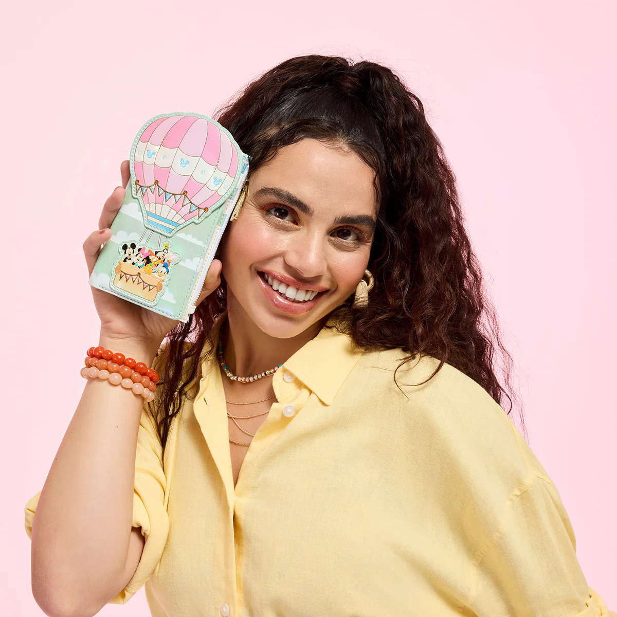 ¡Dale un toque de estilo a tu look con esta billetera! Encontrarás un aplique de un globo aerostático en la parte frontal con algunos de tus personajes favoritos de Disney . En la parte posterior, encontrarás más globos aerostáticos flotando en el cielo. Echa un vistazo al interior y encontrarás siete ranuras para tarjetas y una ranura transparente para tu identificación. Perfecta como el toque final para un conjunto a juego o como un accesorio independiente para recordarte que cada día es una nueva aventura. 1 ranura transparente para identificación