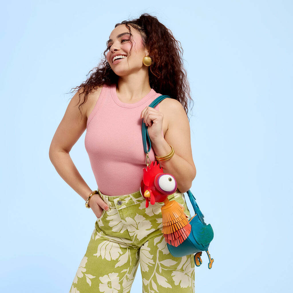 ¡¿Un bolso HEI HEI con figura?! ¡Claro que sí! Lo sabemos, ¡es tan icónico y es imprescindible! Este bolso tiene la forma de Hei Hei, de Moana de Disney. Los flecos auténticos le dan un toque tridimensional a sus plumas. ¡Vamos, Hei Hei realza cualquier look! Características: - Piel sintética (poliuretano) - Bandolera con figura - Apliques, flecos auténticos y detalles estampados - Correa ajustable para el hombro - Dimensiones: 34,2 cm de ancho x 48,2 cm de alto x 11,4 cm de profundidad - Producto oficial de Disney .
