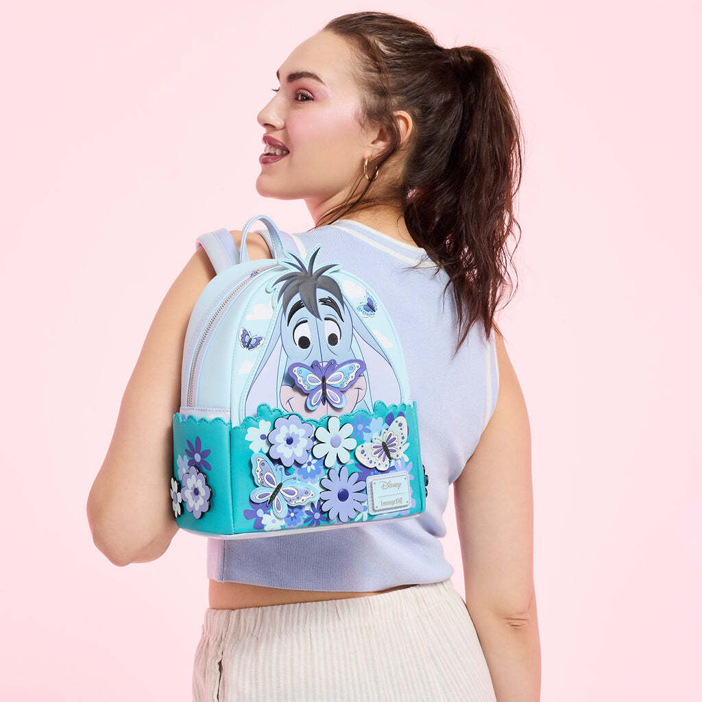 Un precioso bolso Loungefly Eeyore con motivos de mariposas que sin duda llamará la atención. La calidad y la atención al detalle son excepcionales.
