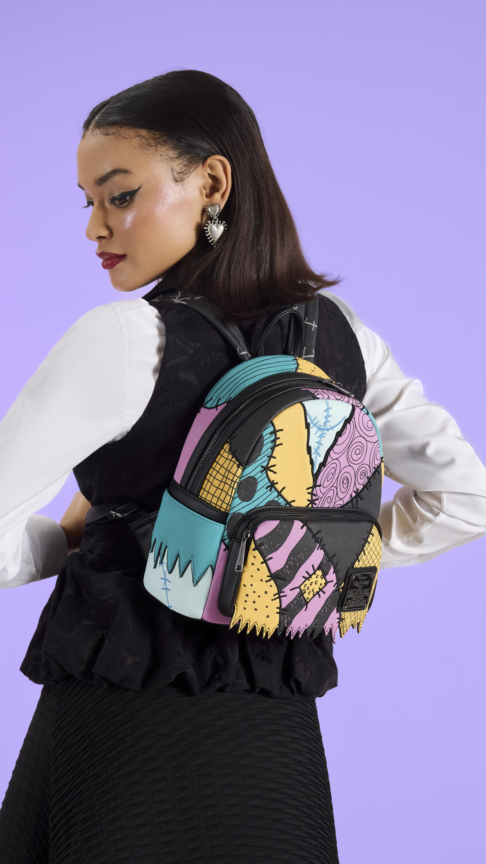 ¿Quién dijo que la temporada de miedo no puede durar todo el año? Celebra a Sally y al mundo de Halloween Town con esta mini mochila.