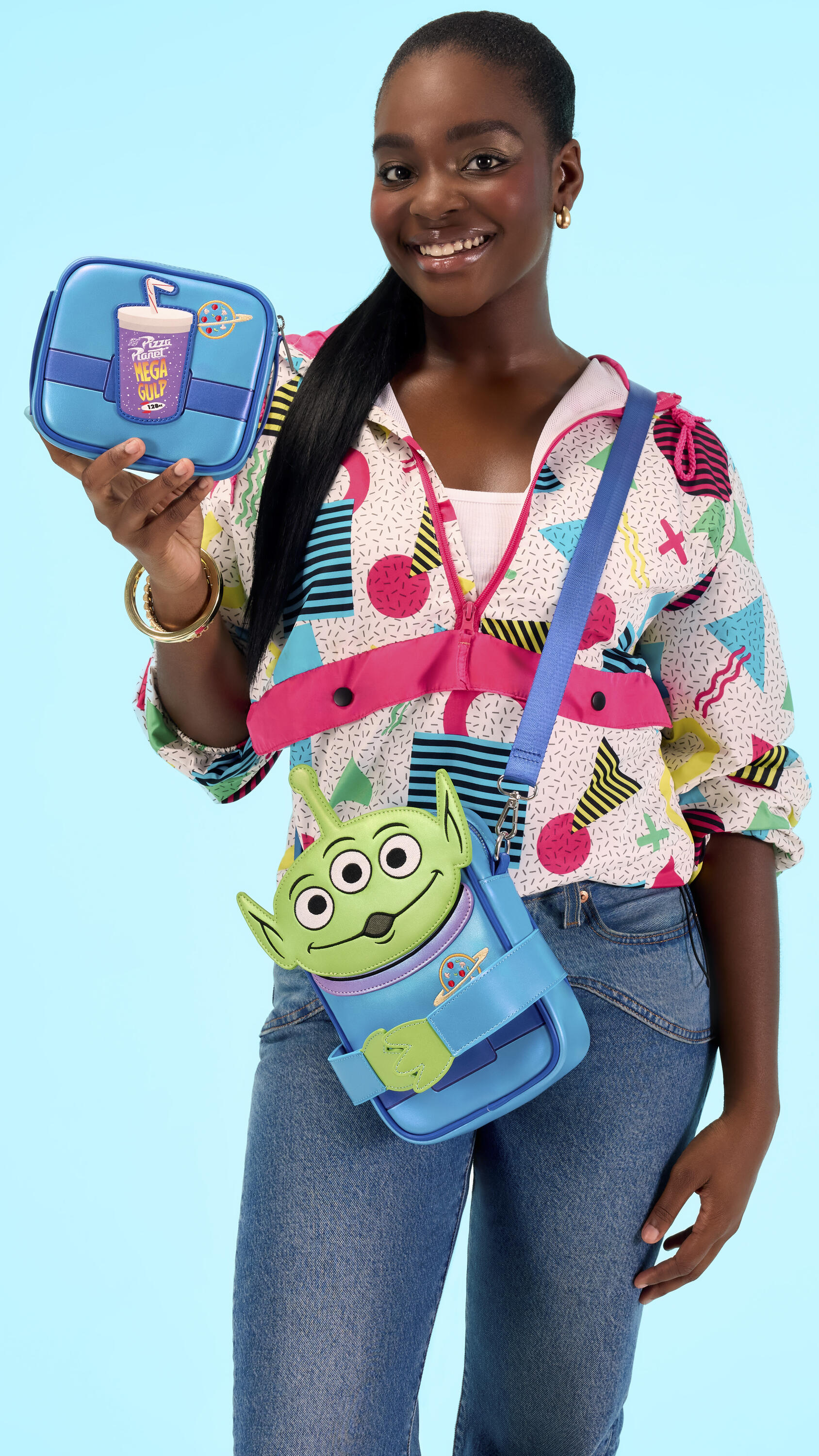 ¡OOOOOOOHHH! ¡Un nuevo bolso Crossbuddies! Este bolso Crossbuddies tiene la forma de uno de los extraterrestres de Toy Story de Disney. Sus brazos rodean la parte delantera para sujetar un monedero reversible y extraíble. En un lado del monedero encontrarás una rebanada de pizza, ¡y en el otro, un refresco! Dale la vuelta al bolso para encontrar más extraterrestres. Debajo de ellos está escrito: "OOOOOOOHHH". ¡Este divertido bolso bandolera es perfecto para destacar y celebrar tu película favorita de Disney !