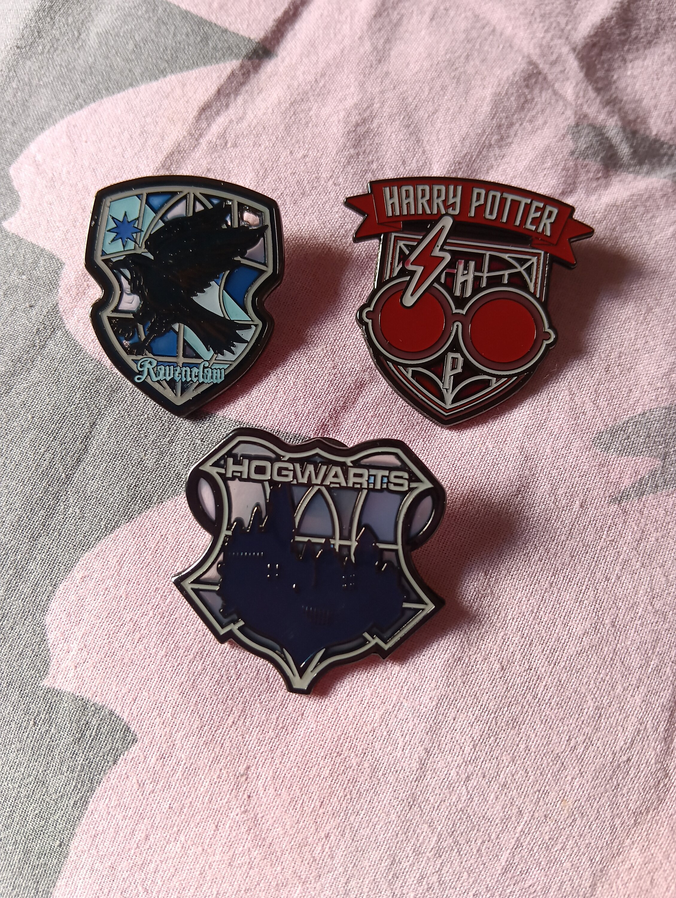 Me decepcionaron estos pins de Harry Potter; el aspecto general es muy oscuro. El efecto vitral no está bien logrado porque los colores de fondo son muy claros, casi imperceptibles.