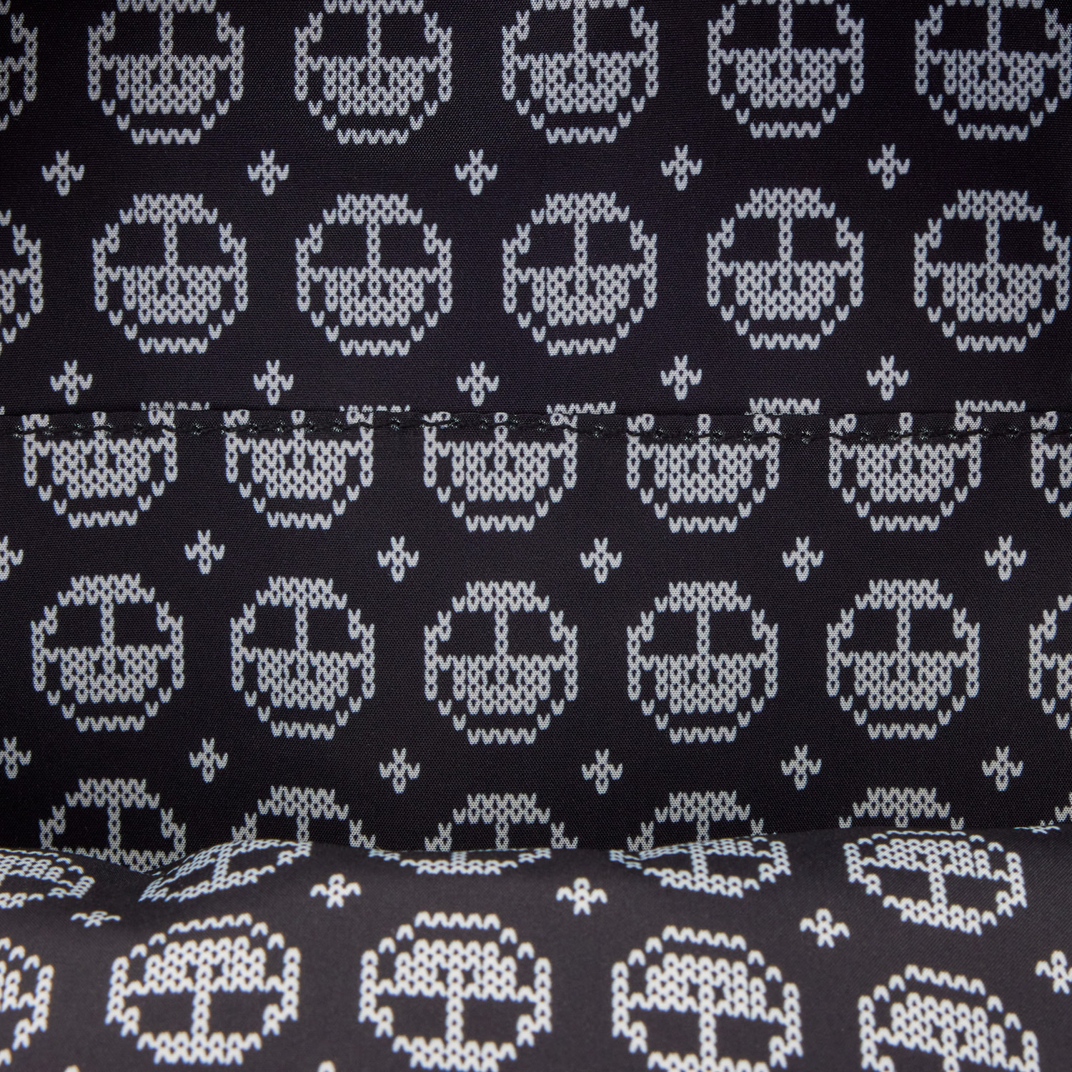 El cuerpo del bolso tiene un diseño similar al de un suéter holiday , con diseños de calabazas y fantasmas. El bolsillo frontal tiene lentejuelas reversibles. ¡Desde un lado se ve a Jack Skellington y desde el otro, una calabaza de Halloween! Es un bolso súper lindo para quienes aman todo lo relacionado con Nightmare Before Christmas.