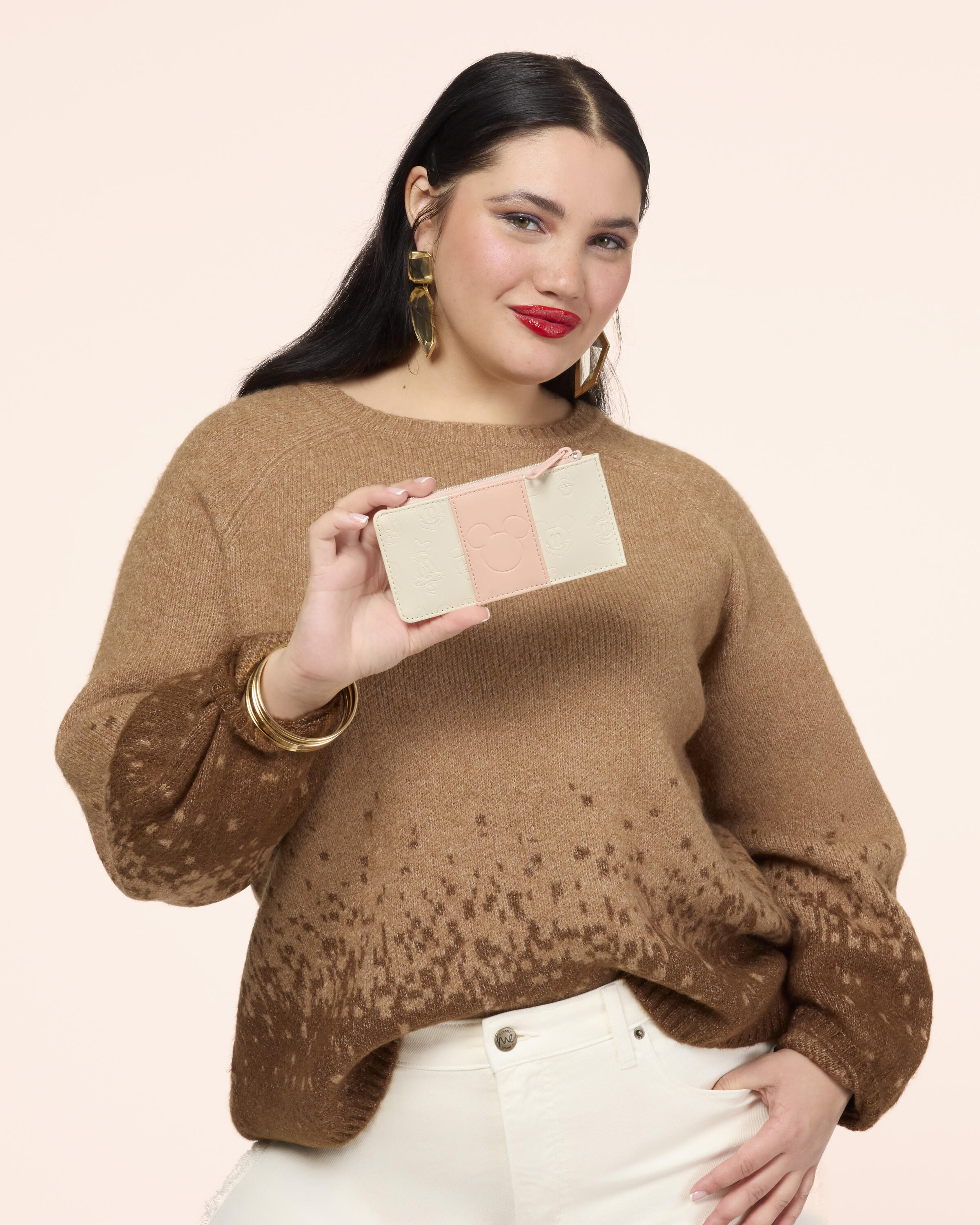 Este portatarjetas presenta detalles en relieve de Mickey Mouse y sus amigos todo partes. ¡Una franja rosa recorre el centro con la silueta de Mickey Mouse ! ¡Gíralo para encontrar cuatro ranuras para guardar tus objetos esenciales!