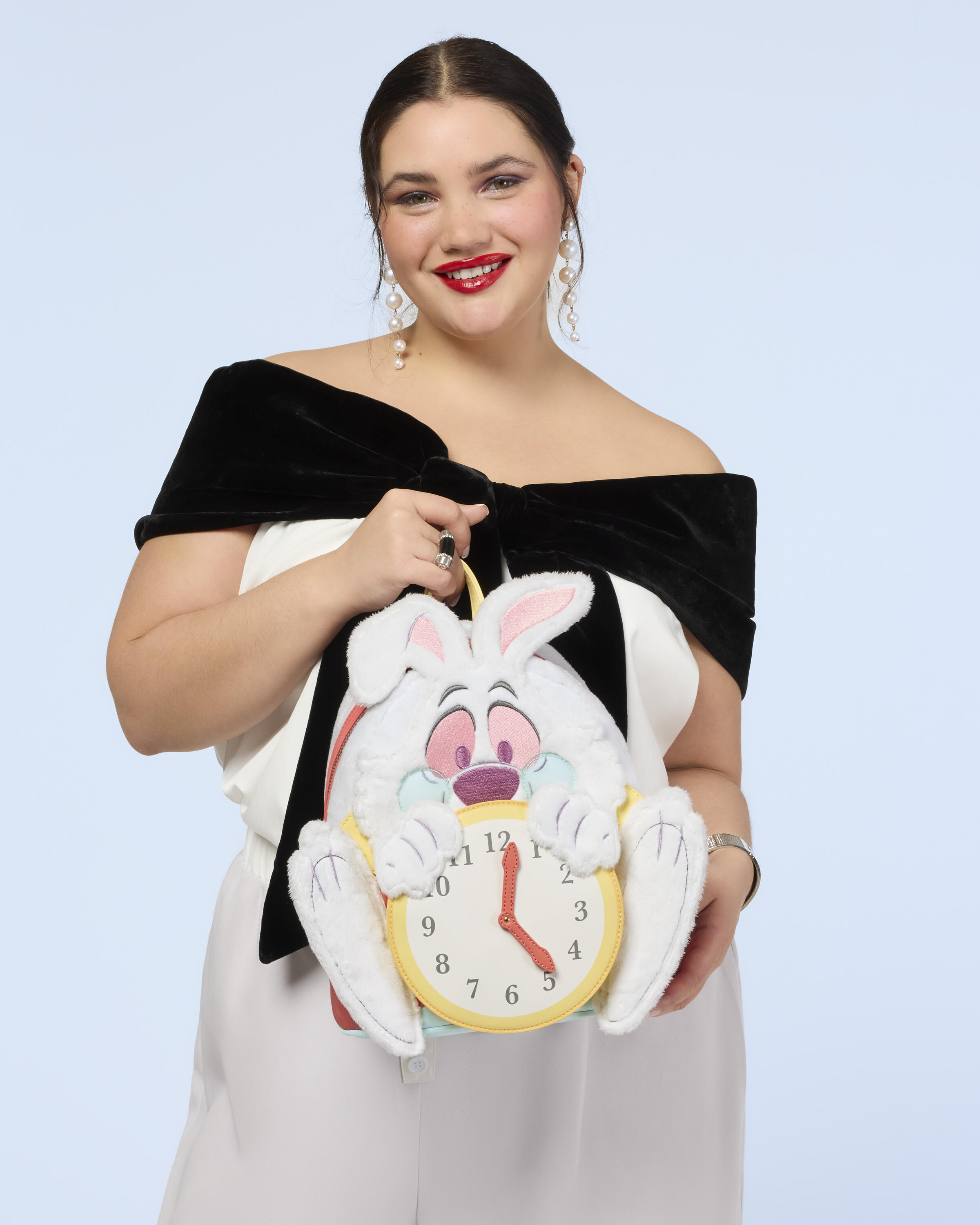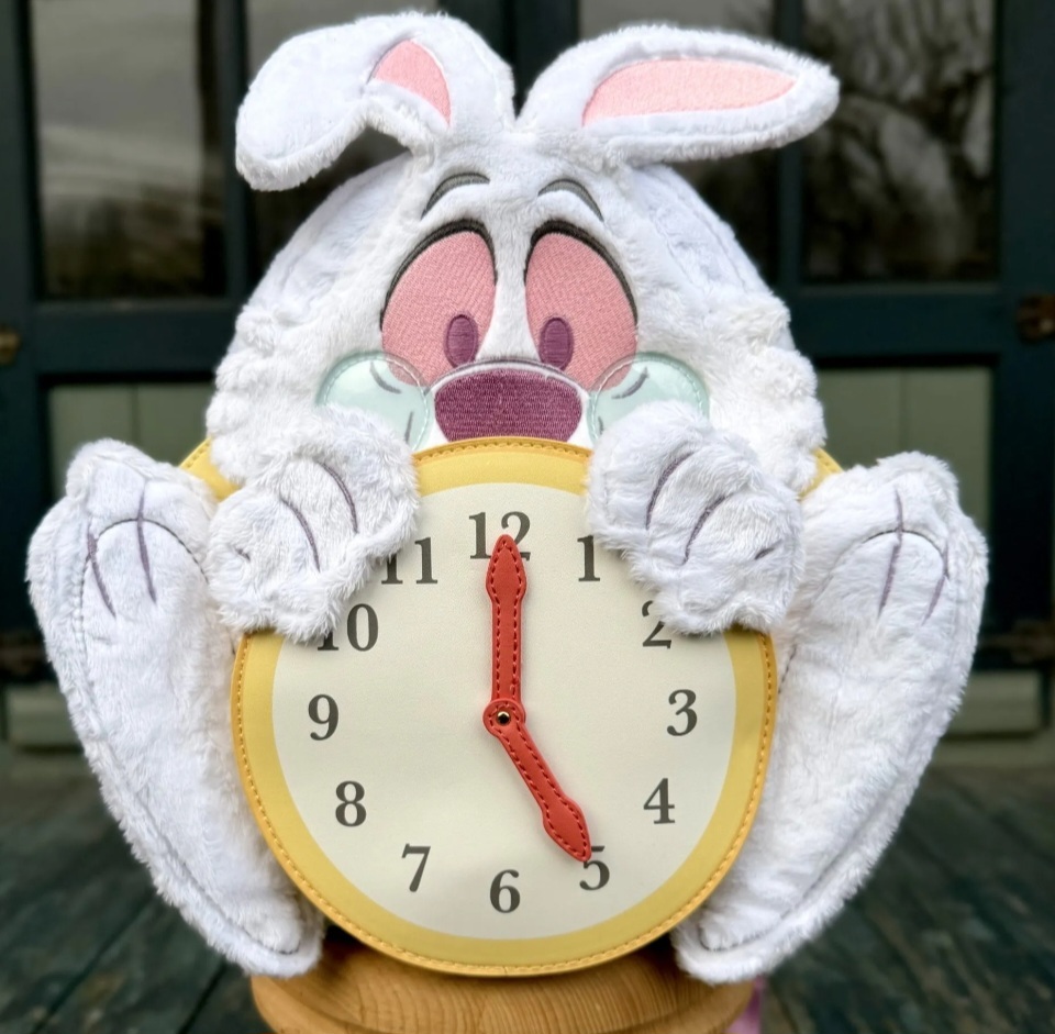 Esta mini mochila está lista para cualquier cita importante. Presenta al El Conejo Blanco de Alicia en el País de las Maravillas de Disney. Encontrarás piel sintética, detalles faciales bordados, PVC y detalles de felpa que le dan vida al conejo. ¡Sujeta un reloj y las manecillas giran sobre un remache! ¡Sumérgete en la madriguera del estilo!