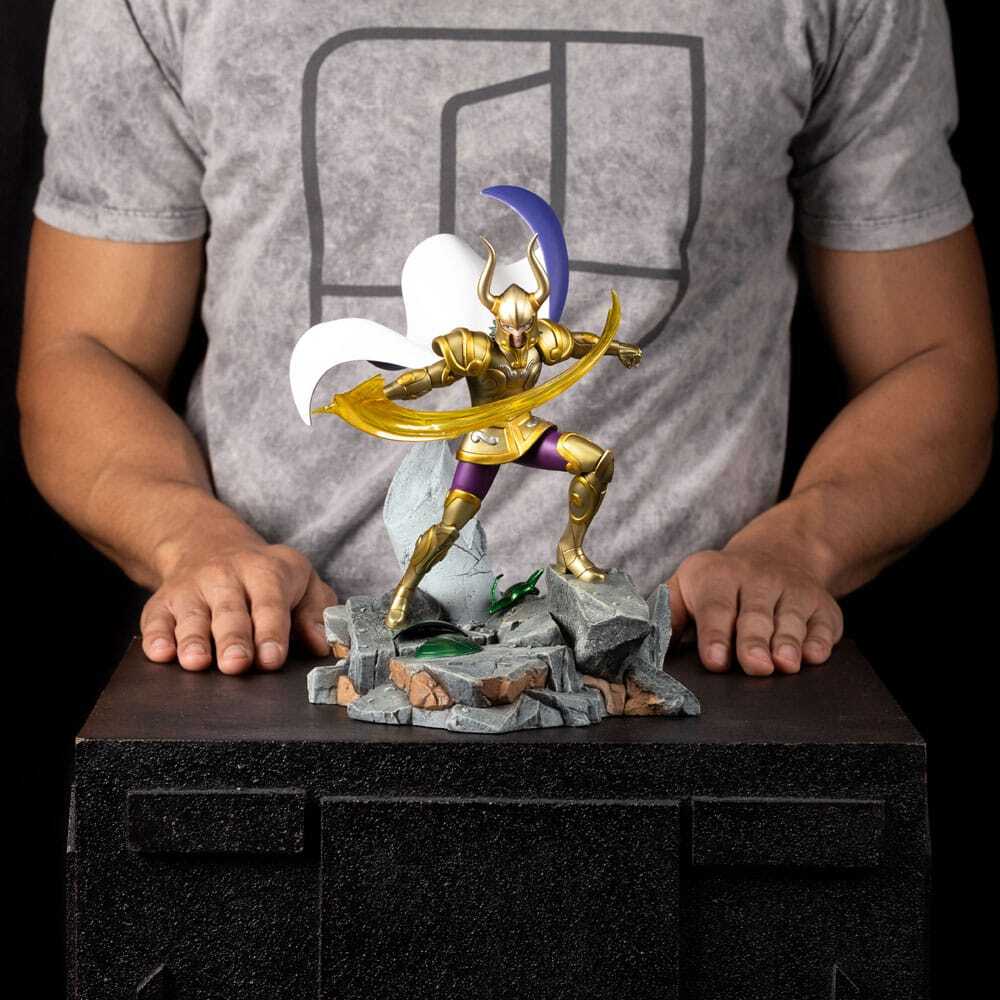 Fabricada en resina de alta calidad a escala 1 , esta pieza pintada a mano presenta una escultura intrincada y una base inspirada en los Doce Templos del Zodiaco. Un homenaje imprescindible para los fans de Los Caballeros del Zodiaco, que rinde homenaje a uno de los guerreros más nobles del Santuario.